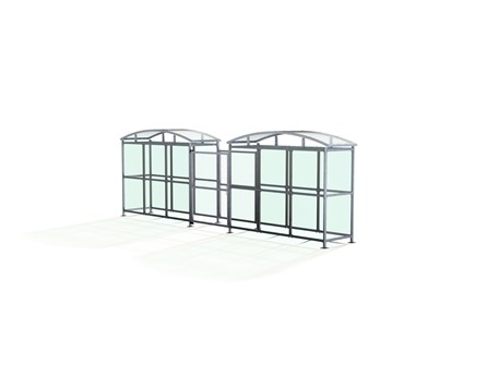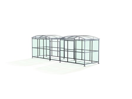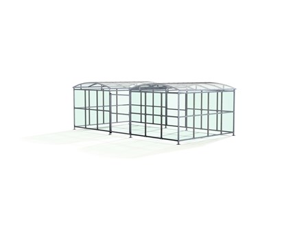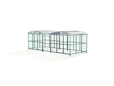 The DCC1 is the compound variant of the Dodford Shelter, and is a free-standing shelter with a Mesh Door lockable by padlock (not included) designed for on site assembly. Constructed from galvanised mild steel, complete with a 4mm PETG clear sheet curved roof and end panels.