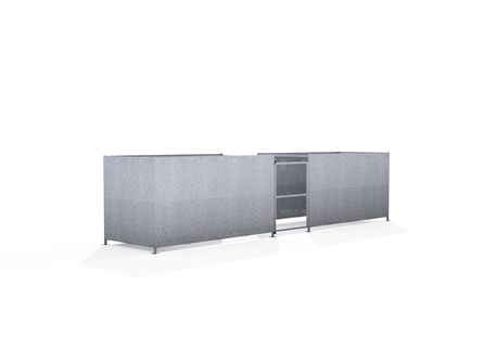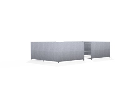 The GMC1 is a compound variant of the Groby Shelter, and is a free-standing shelter with a Mesh Door lockable by padlock (not included) designed for on site assembly. Constructed from galvanised mild steel, complete with galvanised sheet panels.