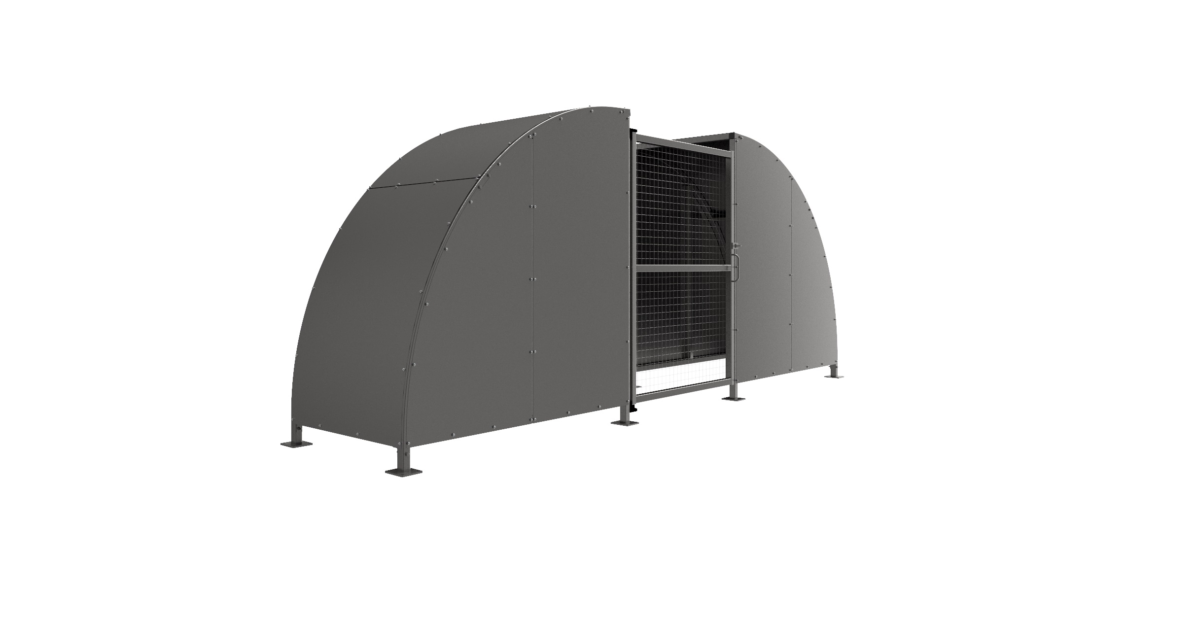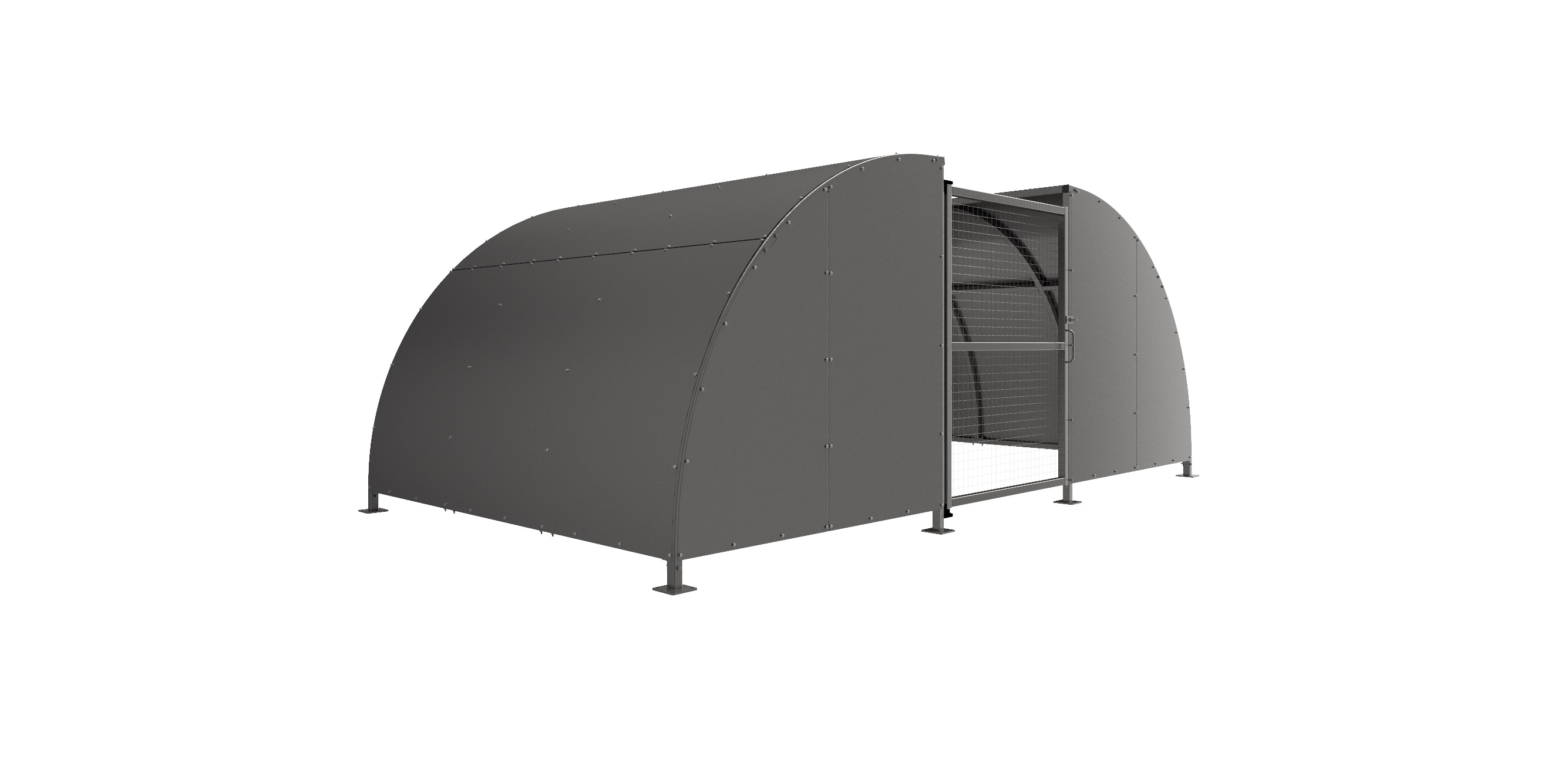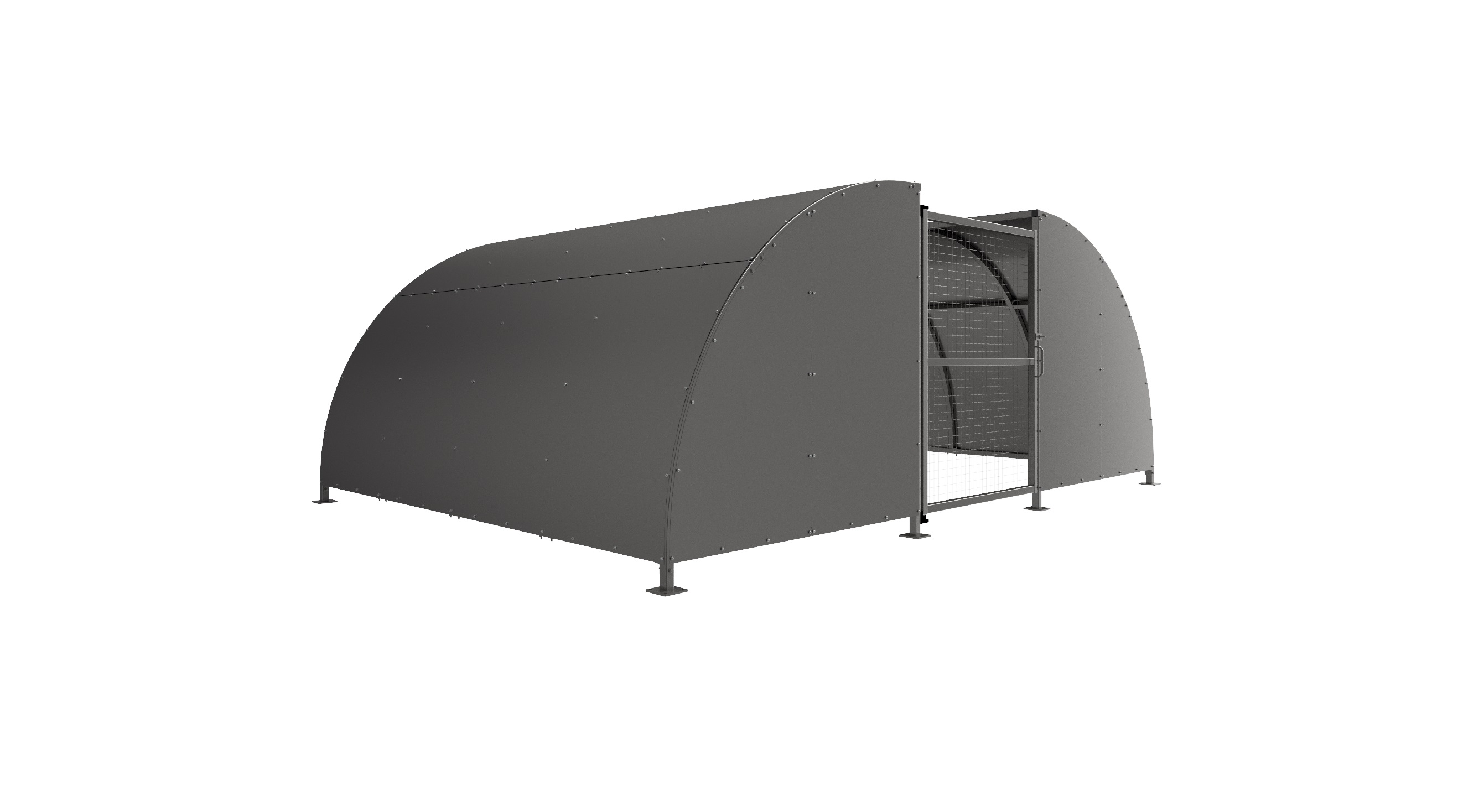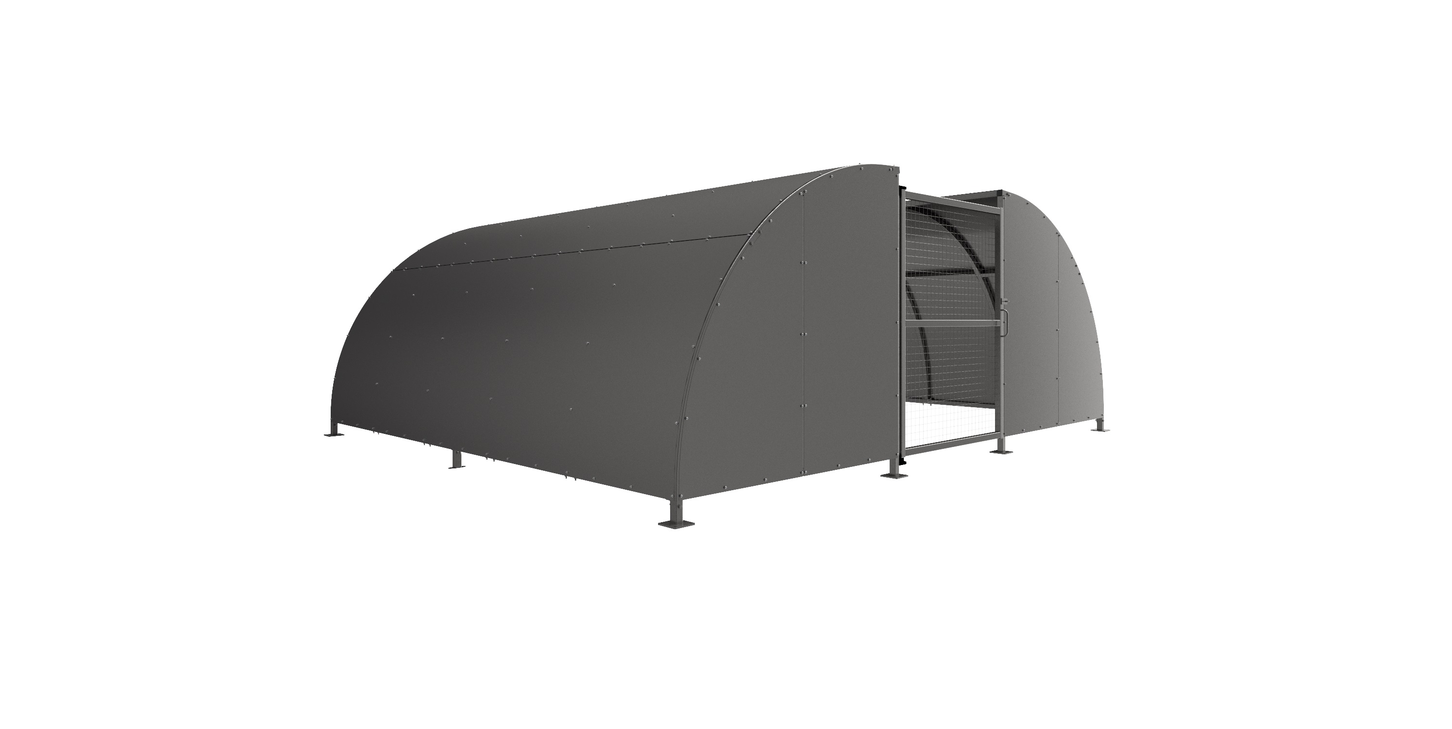 The SGC1 is a variant of the Stratford Compound, and is a free-standing shelter with a Mesh Door lockable by padlock (not included) designed for on site assembly. Constructed from galvanised mild steel, complete with a 1mm galvanised sheet curved roof and end panels.