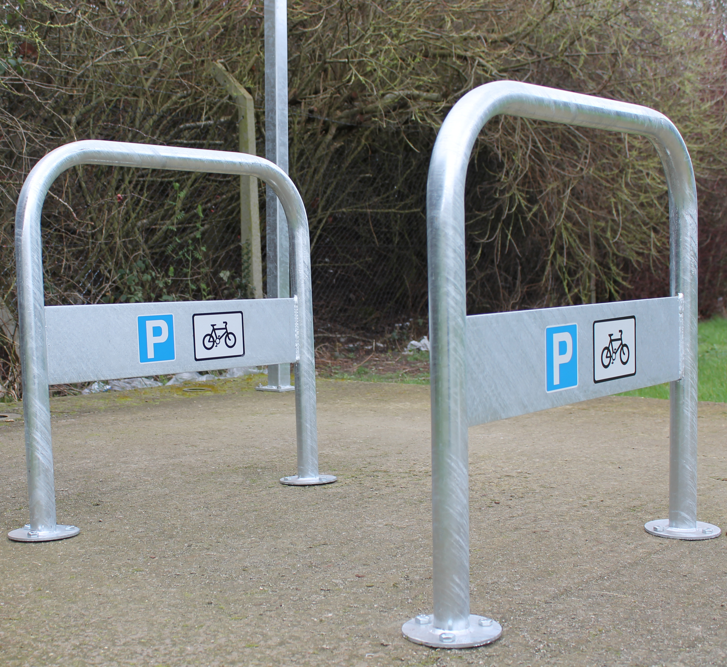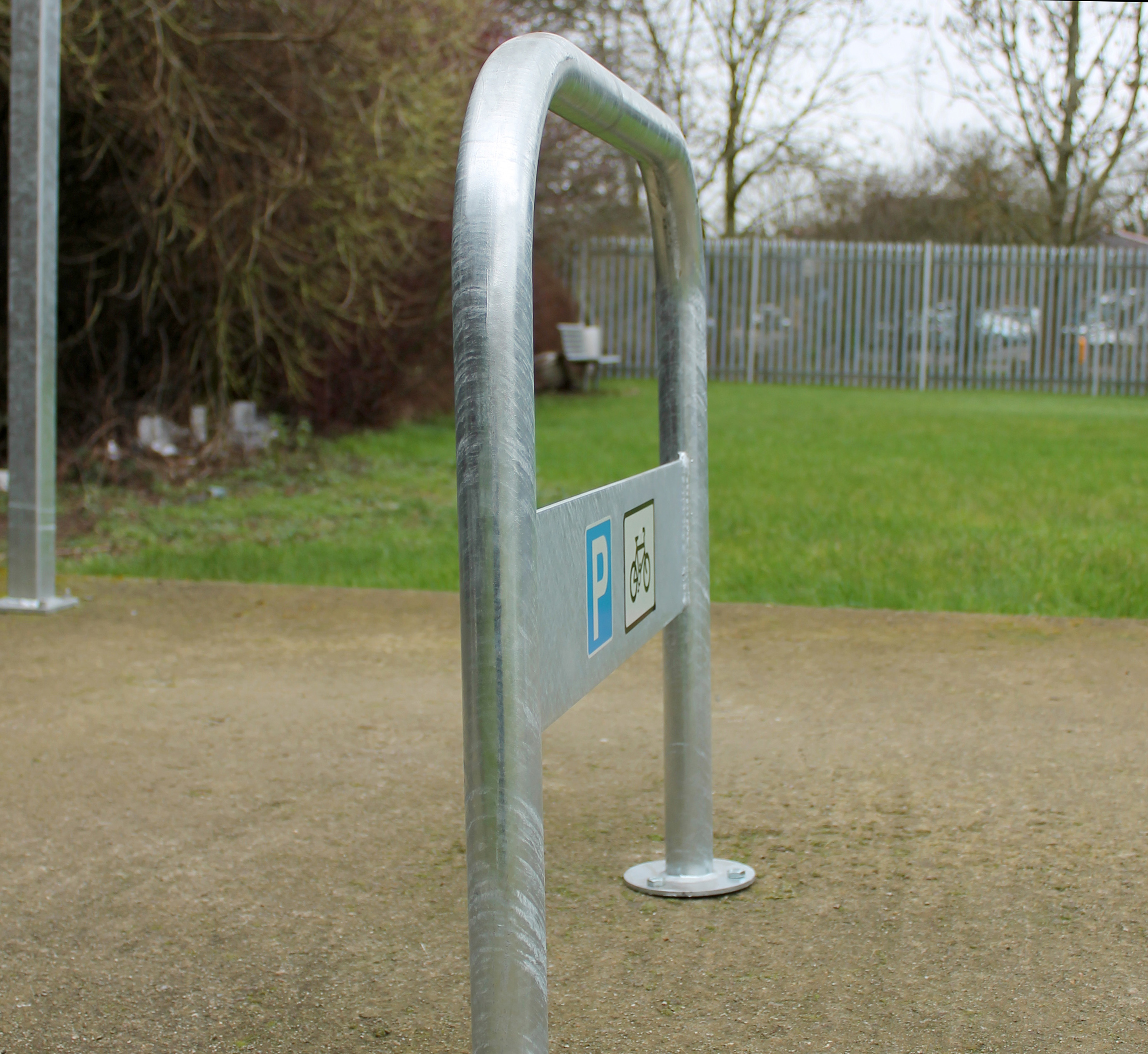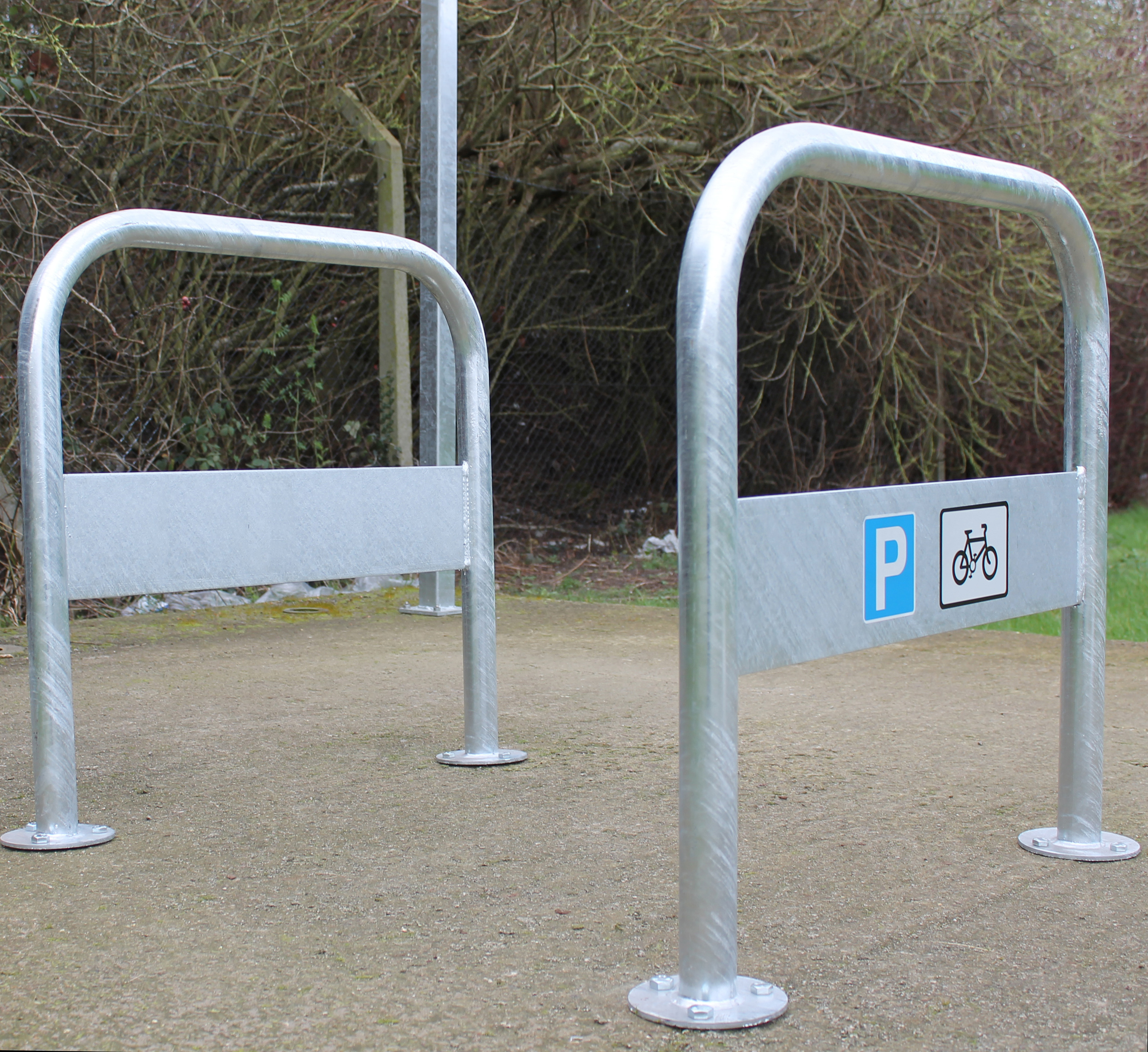 The Hillmorton Cycle Stand is based on the popular Sheffield Cycle Stand. A familiar sight throughout the UK, the design allows the frame and wheel of the bicycle to be secured by the cyclists own lock. Each stand is suitable for securing two bicycles at once. The Hillmorton Cycle Stand has an integrated signage plate, with the Cycle Parking ‘P’ and cycle symbol signs incorporated into the design as standard. The lower edge of the signage plate sits 350mm above the ground.