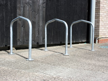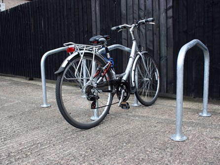 The Ashby Cycle Stand is a shaped tubular cycle stand. The design allows the frame of the bicycle to be secured by the users own security lock. The Ashby Cycle Stand is suitable for securing two bicycles. The Ashby Cycle Stand is available in galvanised steel, Galvanised & Coated or Grade 304 Stainless Steel, with ragged feet for casting into new concrete or flanged feet for bolting to an existing surface.