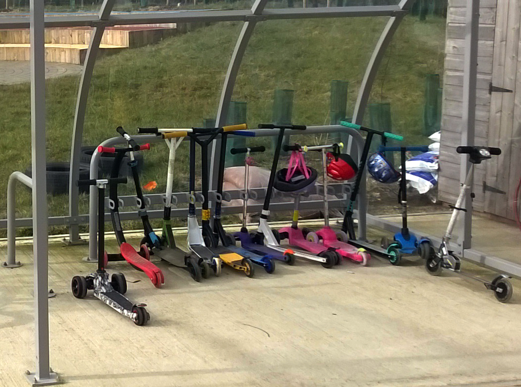 The Kids Scooter Rack is ideal for the storage of kids scooters while they are at school. The Rack is available in single or double sided with hoops welded to the cross bar that allow the scooter to be secured with a cycle lock.