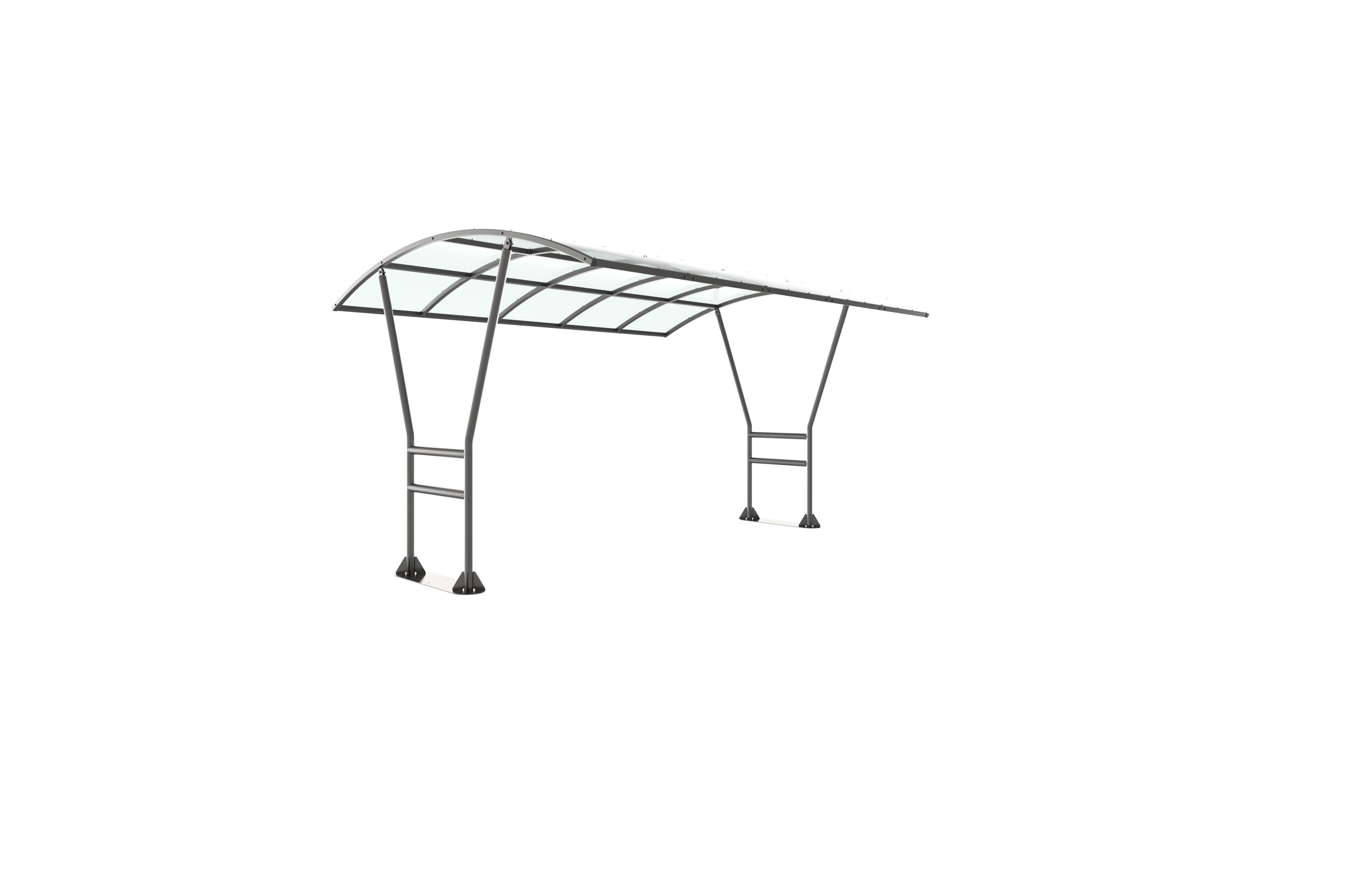 The Ashton shelter is a free-standing, open double sided shelter designed for on site assembly, constructed from galvanised mild steel. Complete with a 4mm PETG clear sheet curved roof.