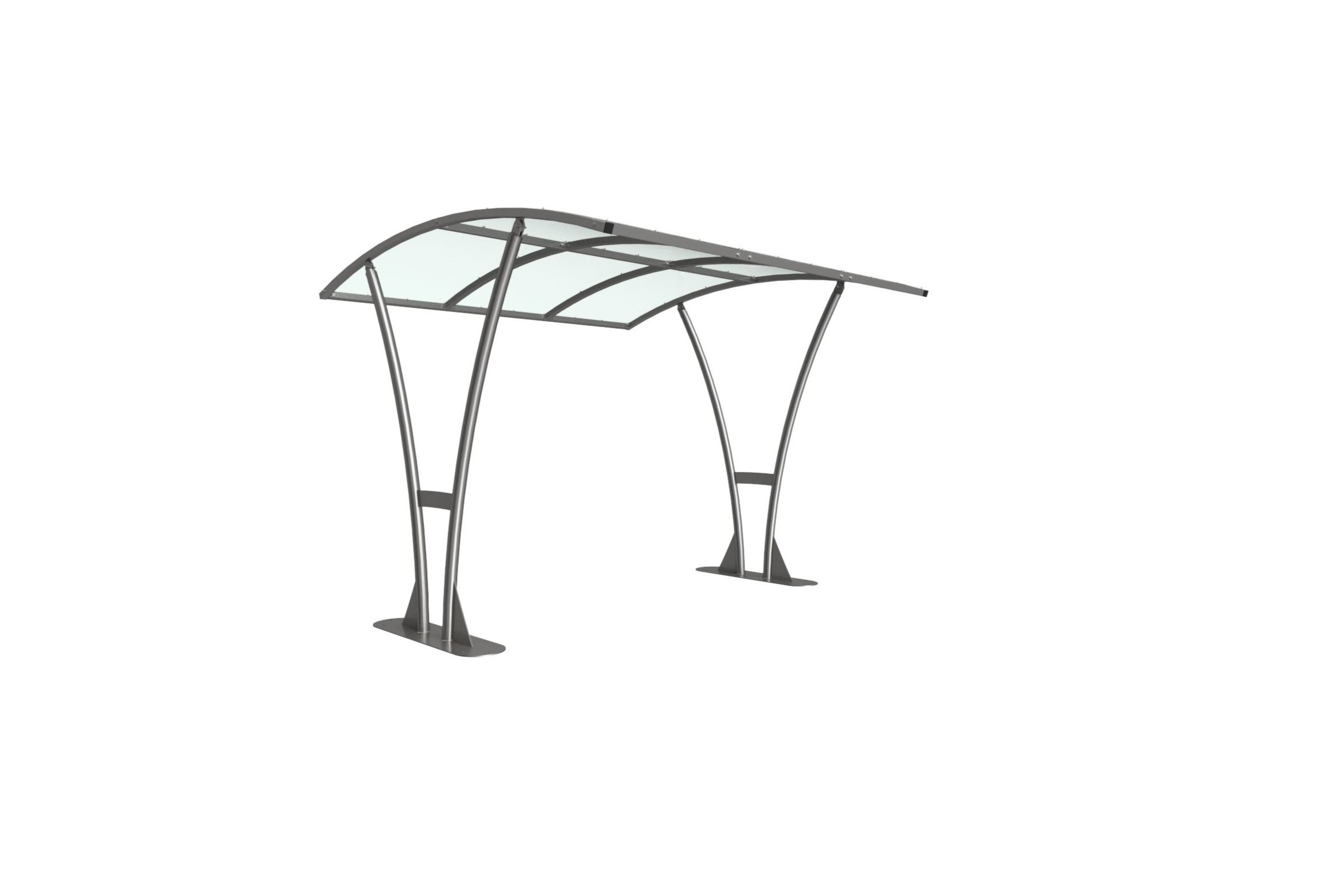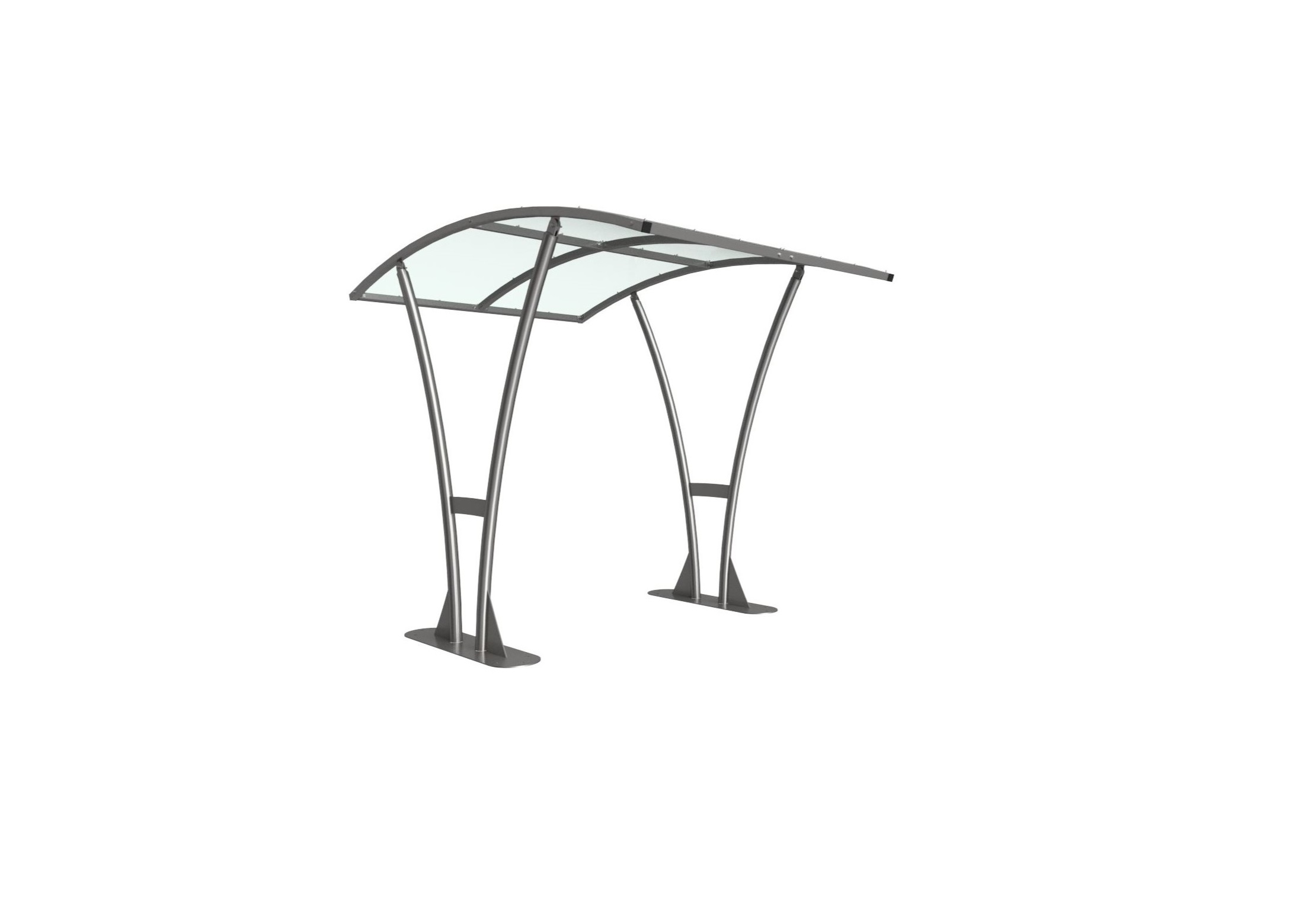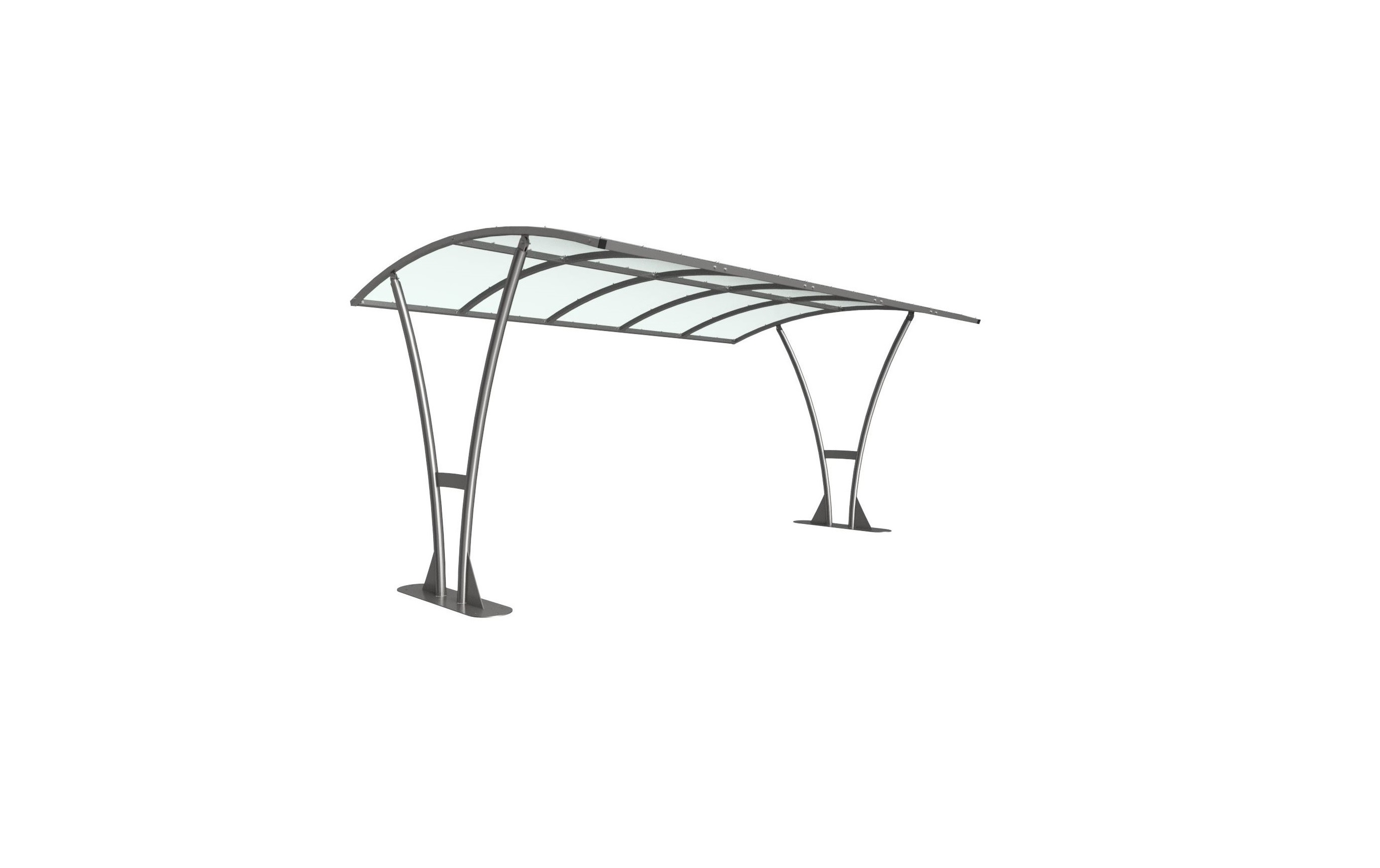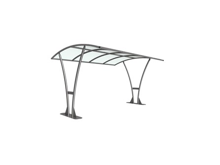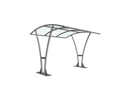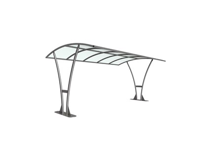 The Bentham shelter is a free-standing, open sided shelter designed for on site assembly, constructed from galvanised mild steel. Complete with a 4mm PETG clear sheet curved roof.