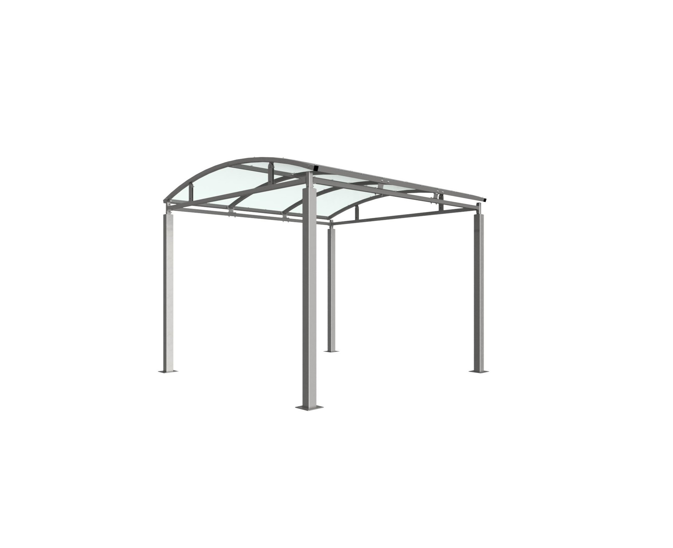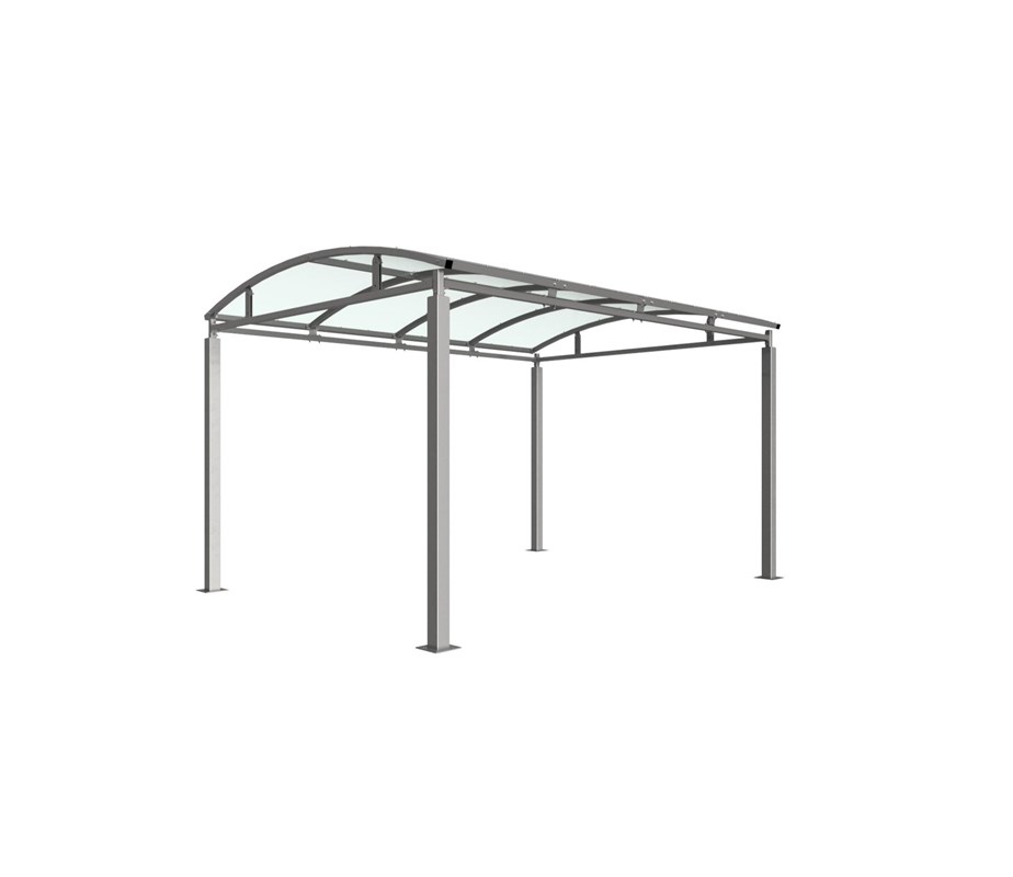 The Bolton shelter is a free-standing, open sided shelter designed for on site assembly, constructed from galvanised mild steel. Complete with a 4mm PETG clear sheet curved roof.