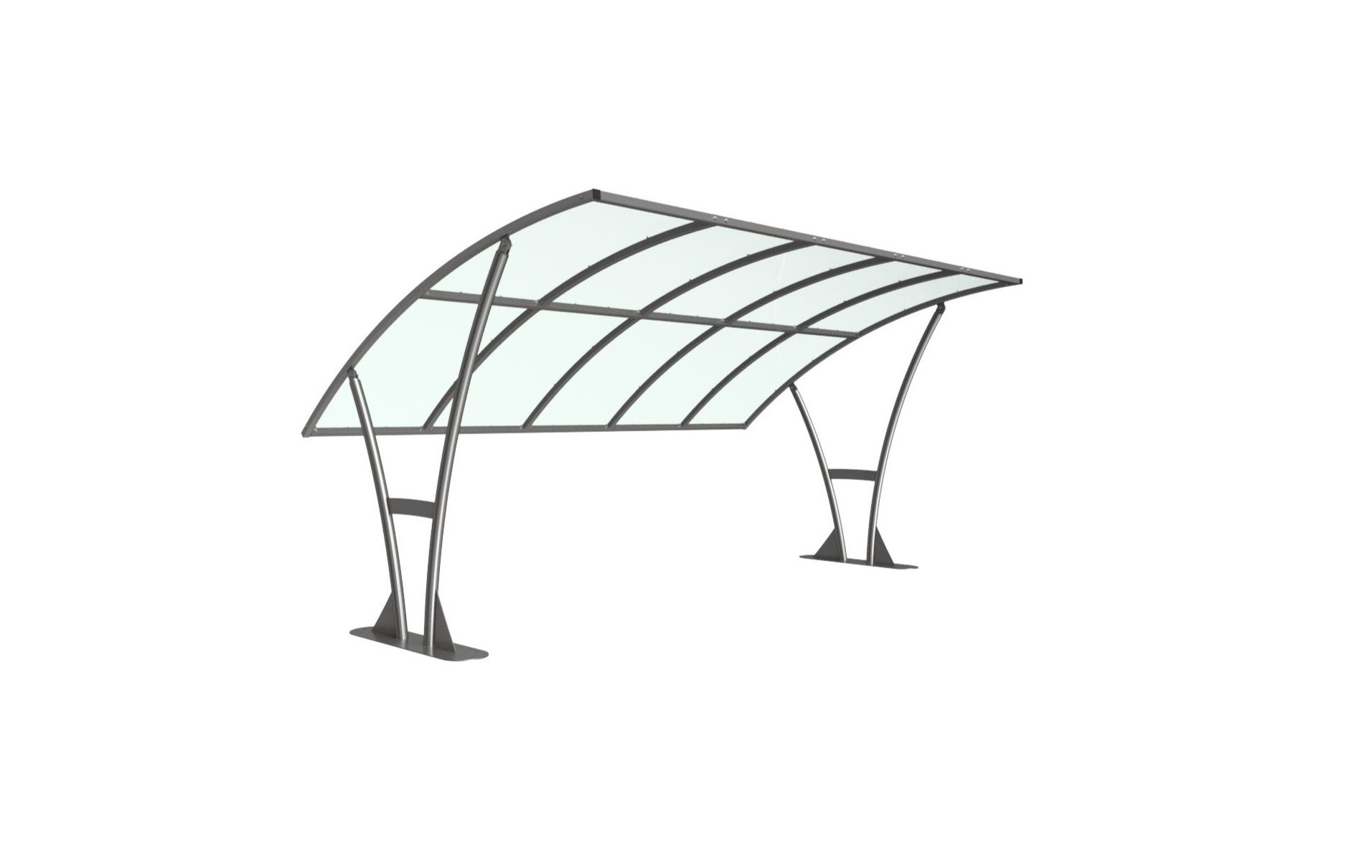 The Bowland shelter is a free-standing, open sided shelter designed for on site assembly, constructed from galvanised mild steel. Complete with a 4mm PETG clear sheet curved roof.