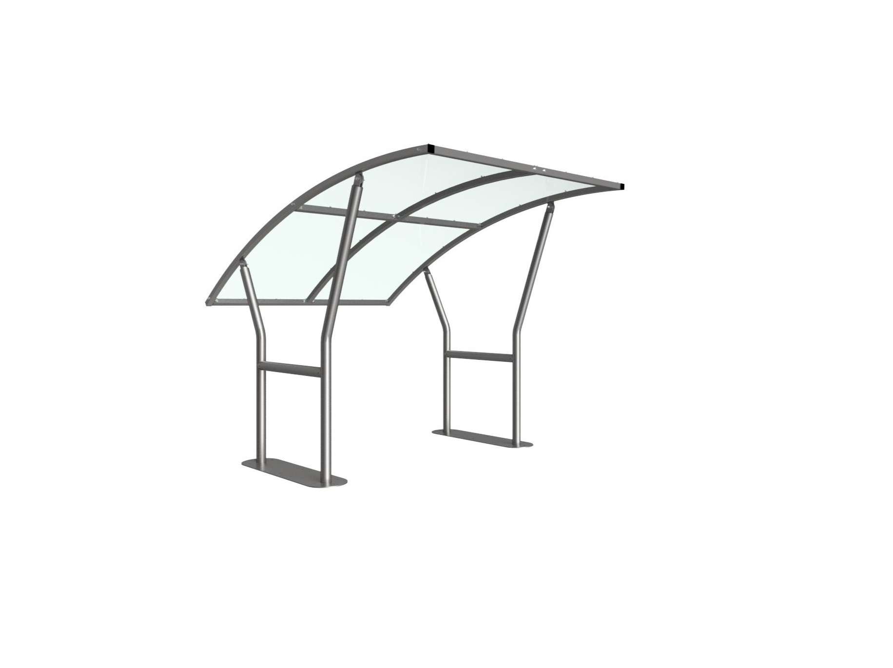 The Cambourne shelter is a free-standing, open sided shelter designed for on site assembly, constructed from galvanised mild steel. Complete with a 4mm PETG clear sheet curved roof.