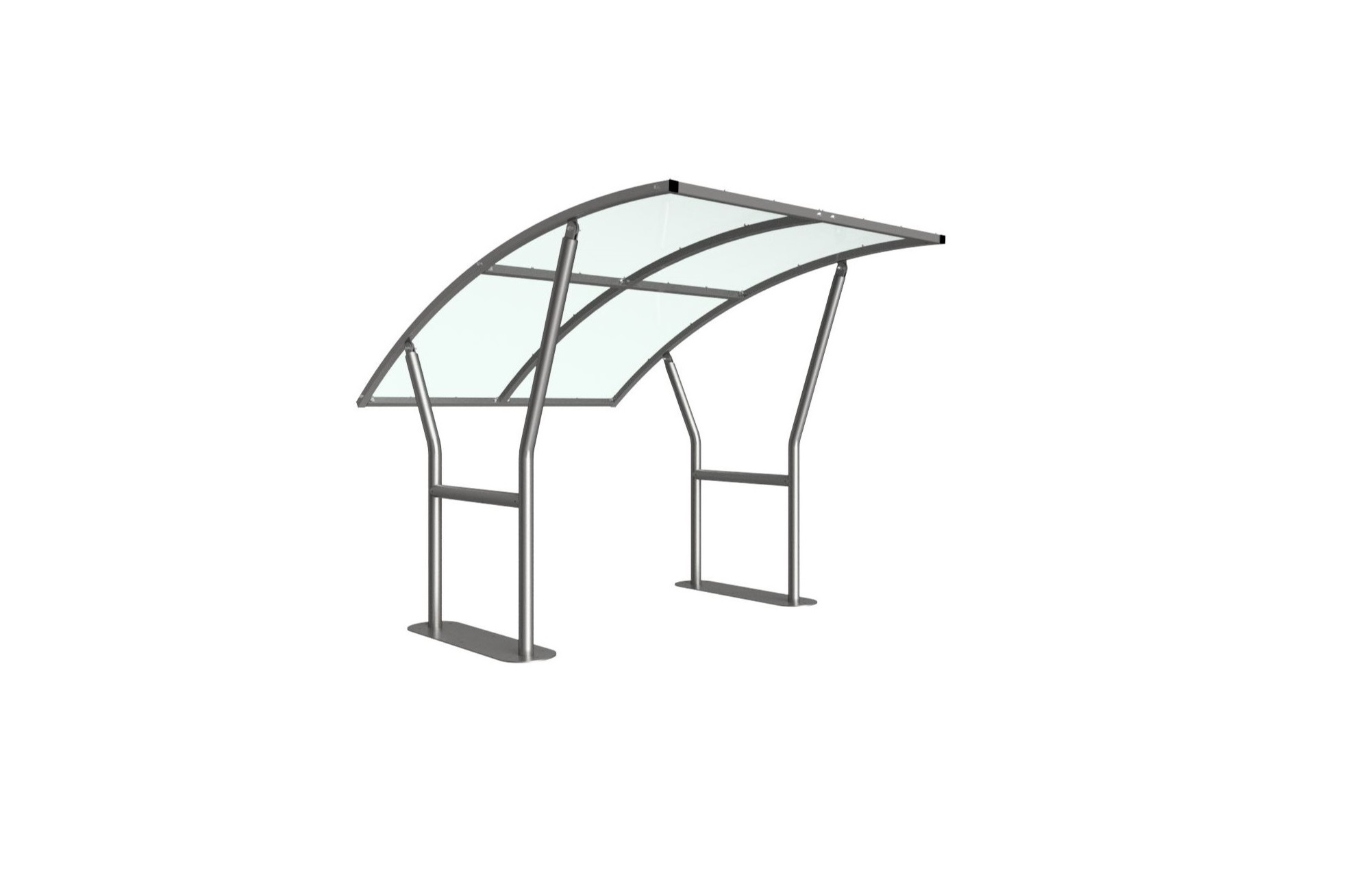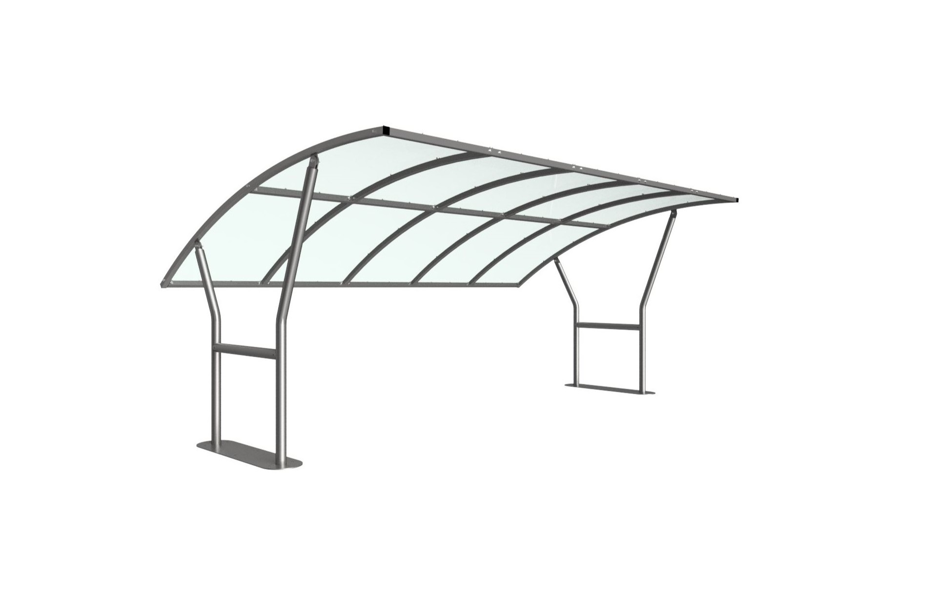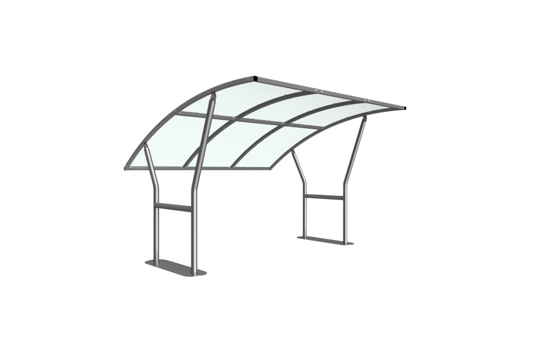 The Cambridge shelter is a free-standing, open sided shelter designed for on site assembly, constructed from galvanised mild steel. Complete with twin wall polycarbonate sheet curved roof.