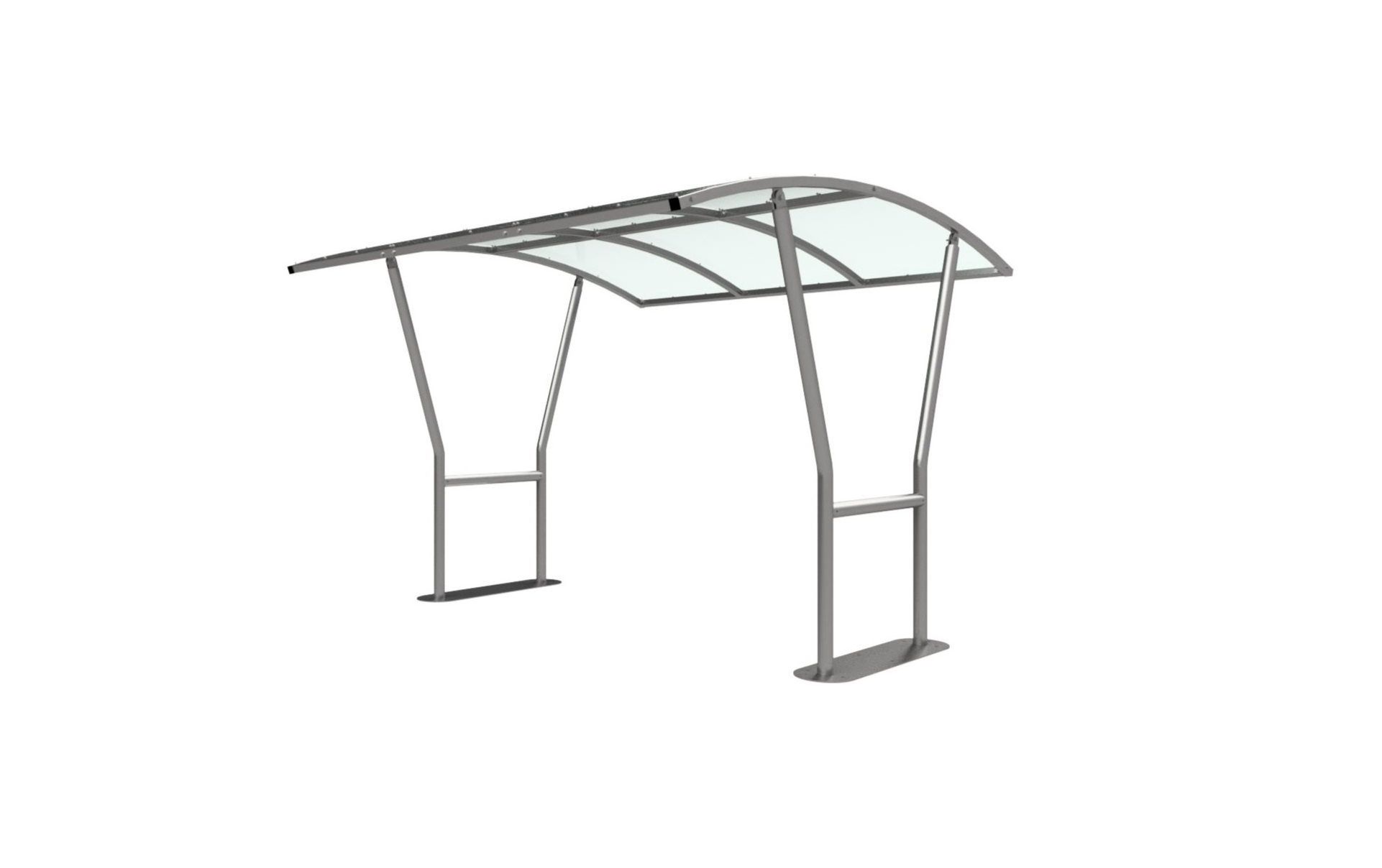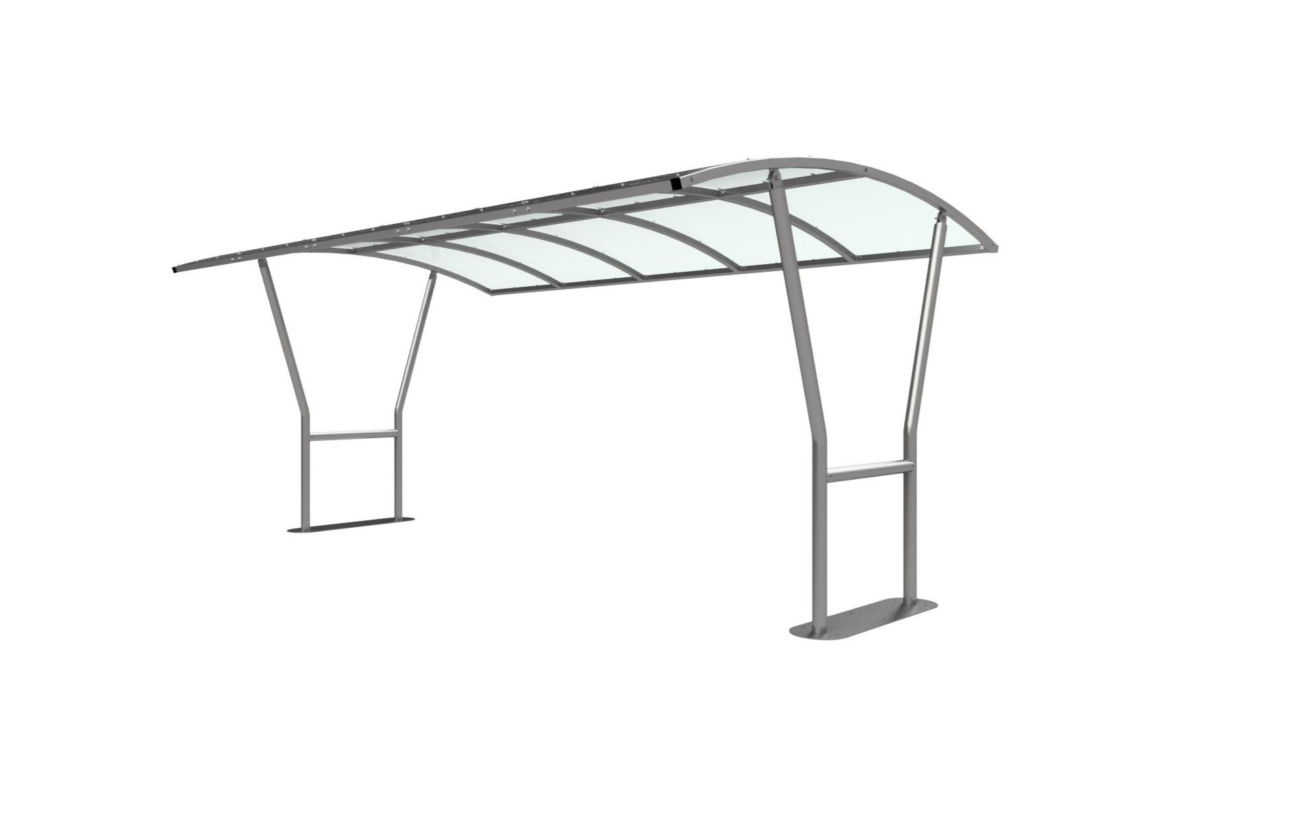 The Canterbury shelter is a free-standing, open sided shelter designed for on site assembly, constructed from galvanised mild steel. Complete with twin wall polycarbonate sheet curved roof.
