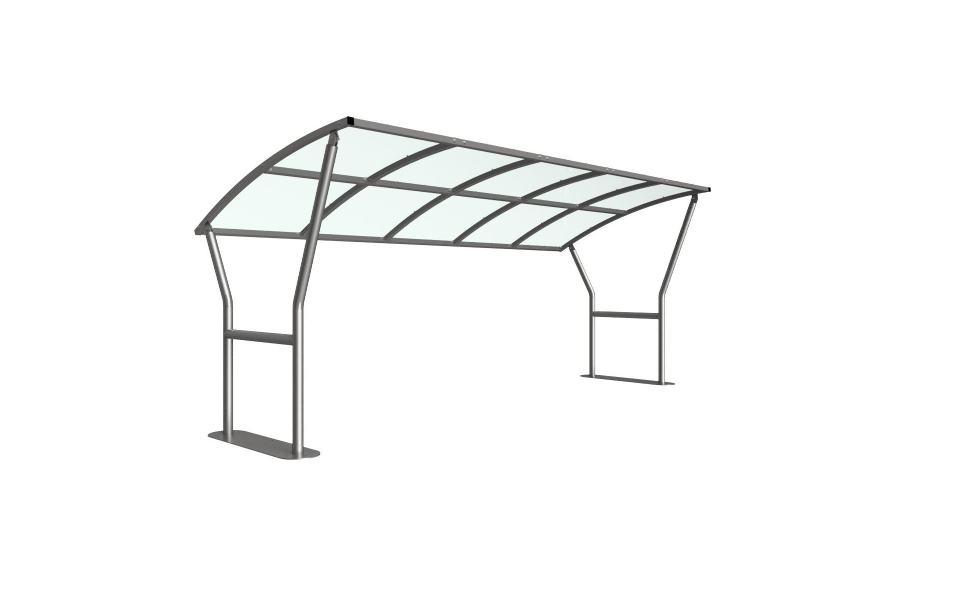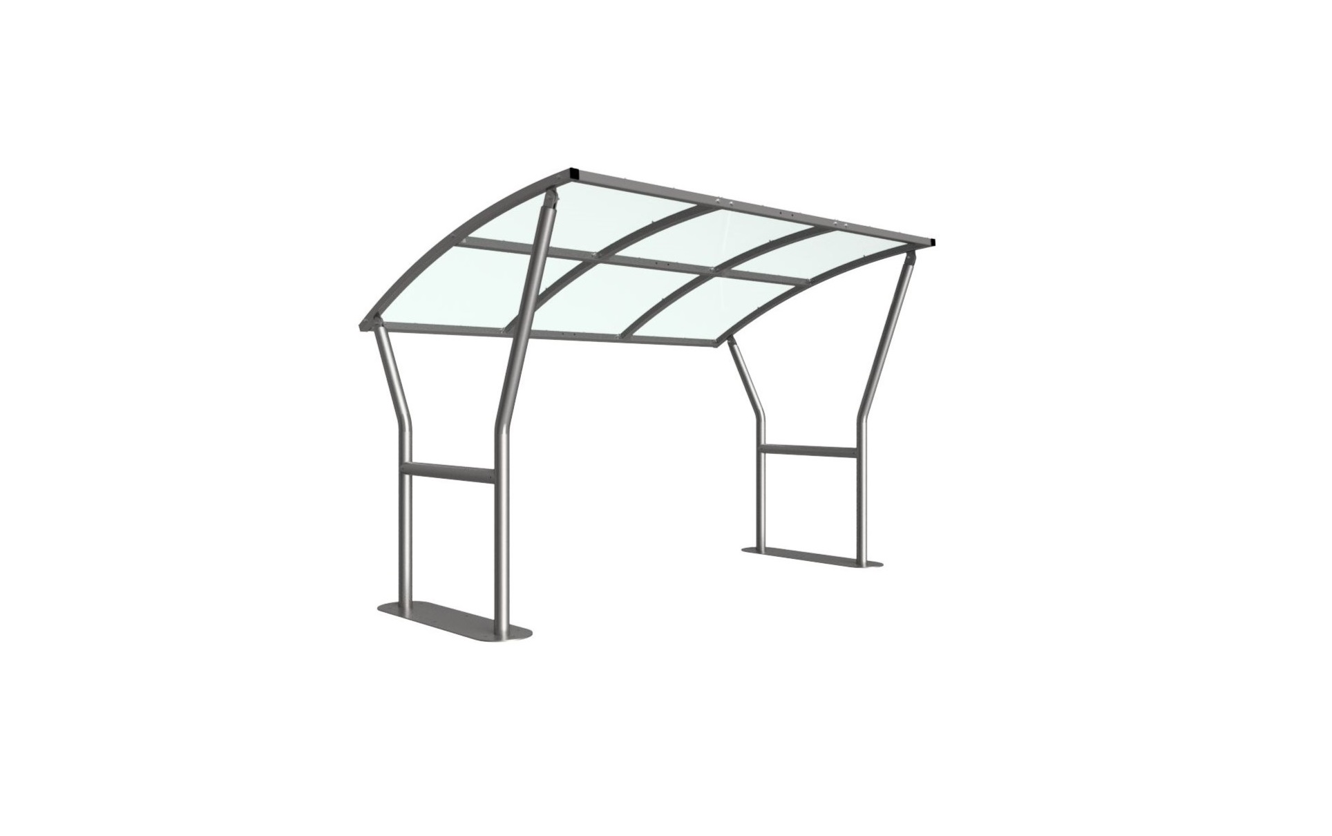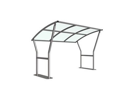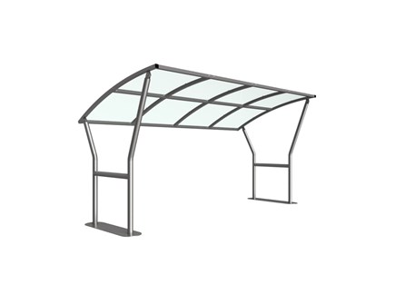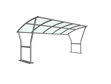 The Caxton shelter is a free-standing, open sided shelter designed for on site assembly, constructed from galvanised mild steel. Complete with a 4mm PETG clear sheet curved roof.
