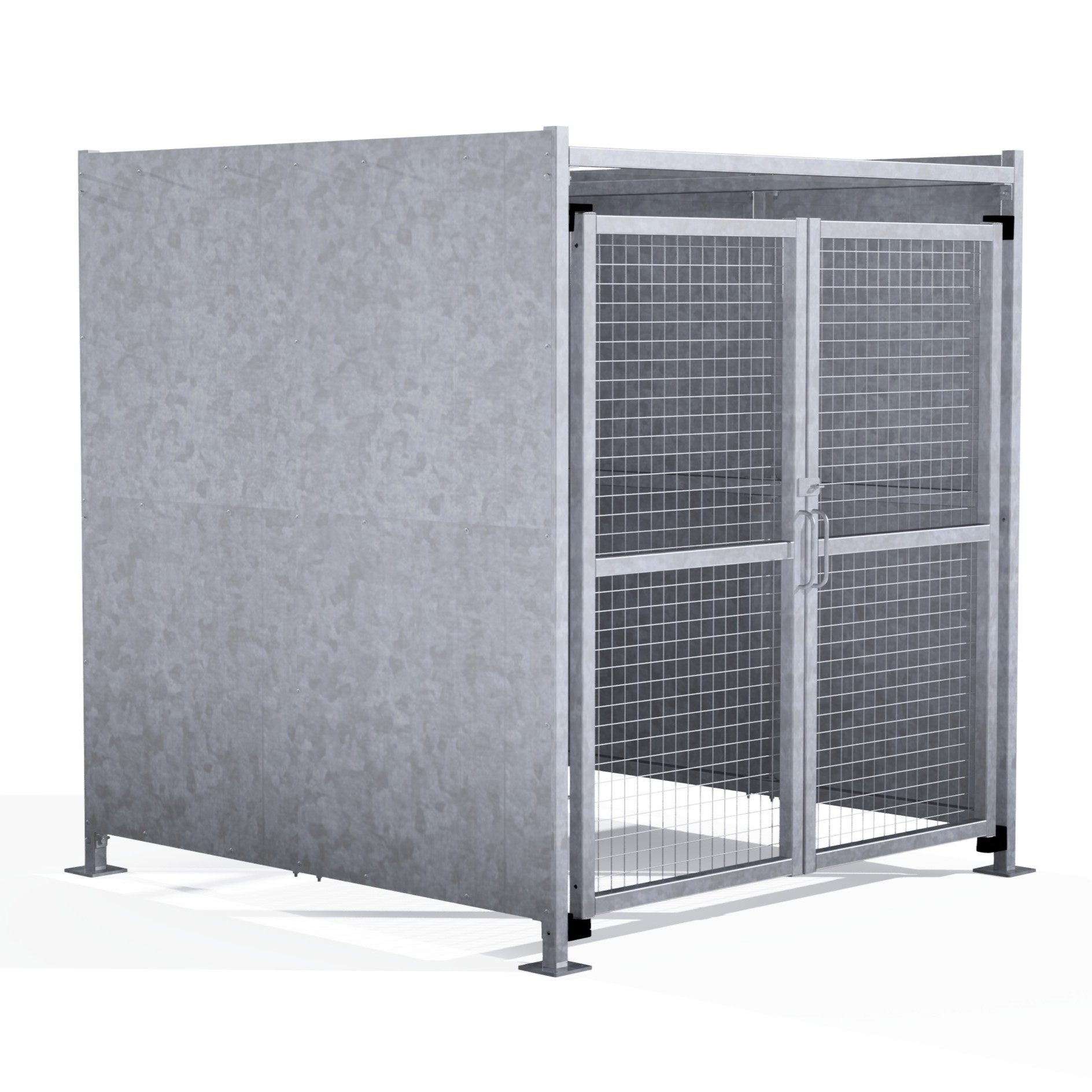 The EM1 variant of the Eaton shelter is a free-standing shelter with Mesh Doors lockable by padlock (not included) designed for on site assembly, constructed from galvanised mild steel.