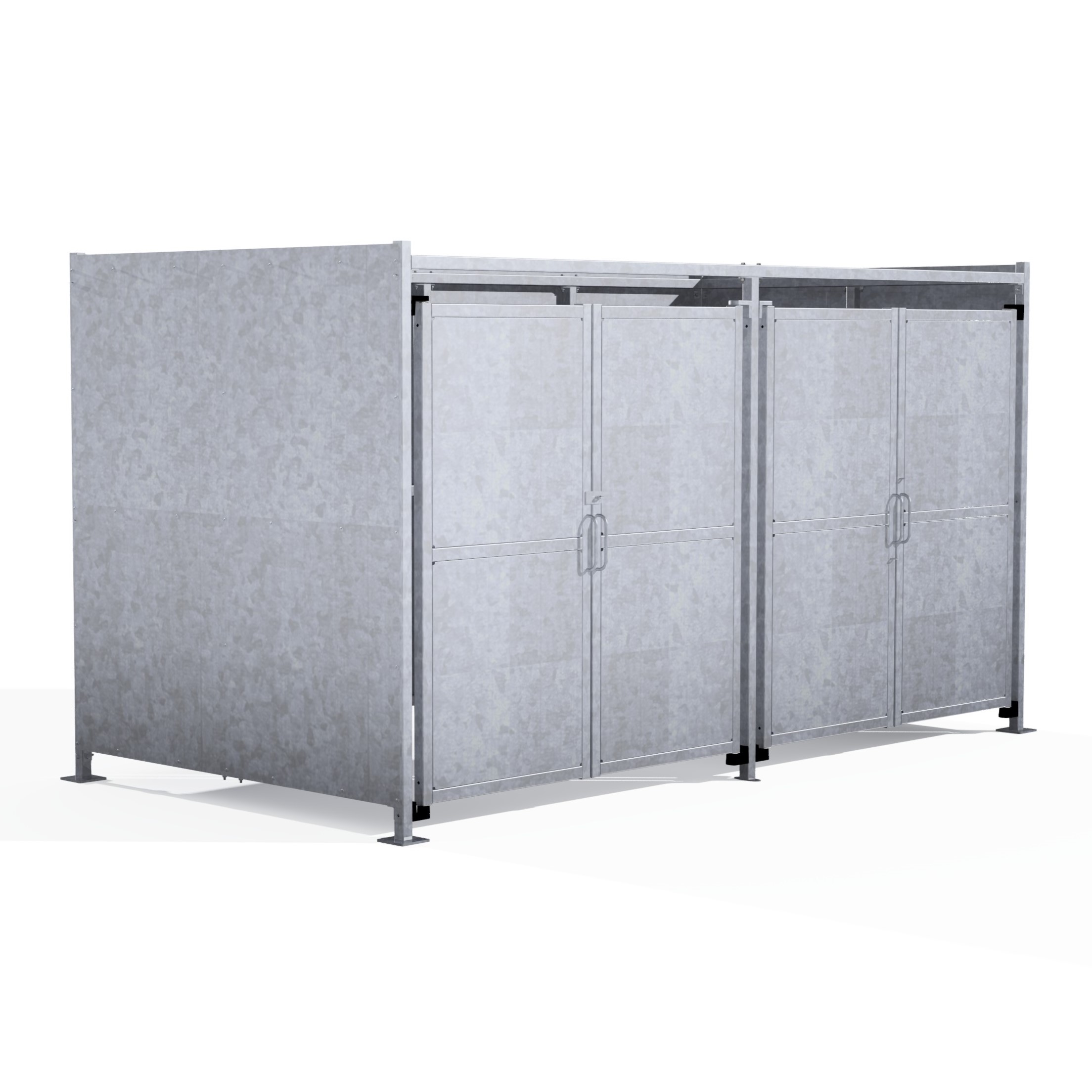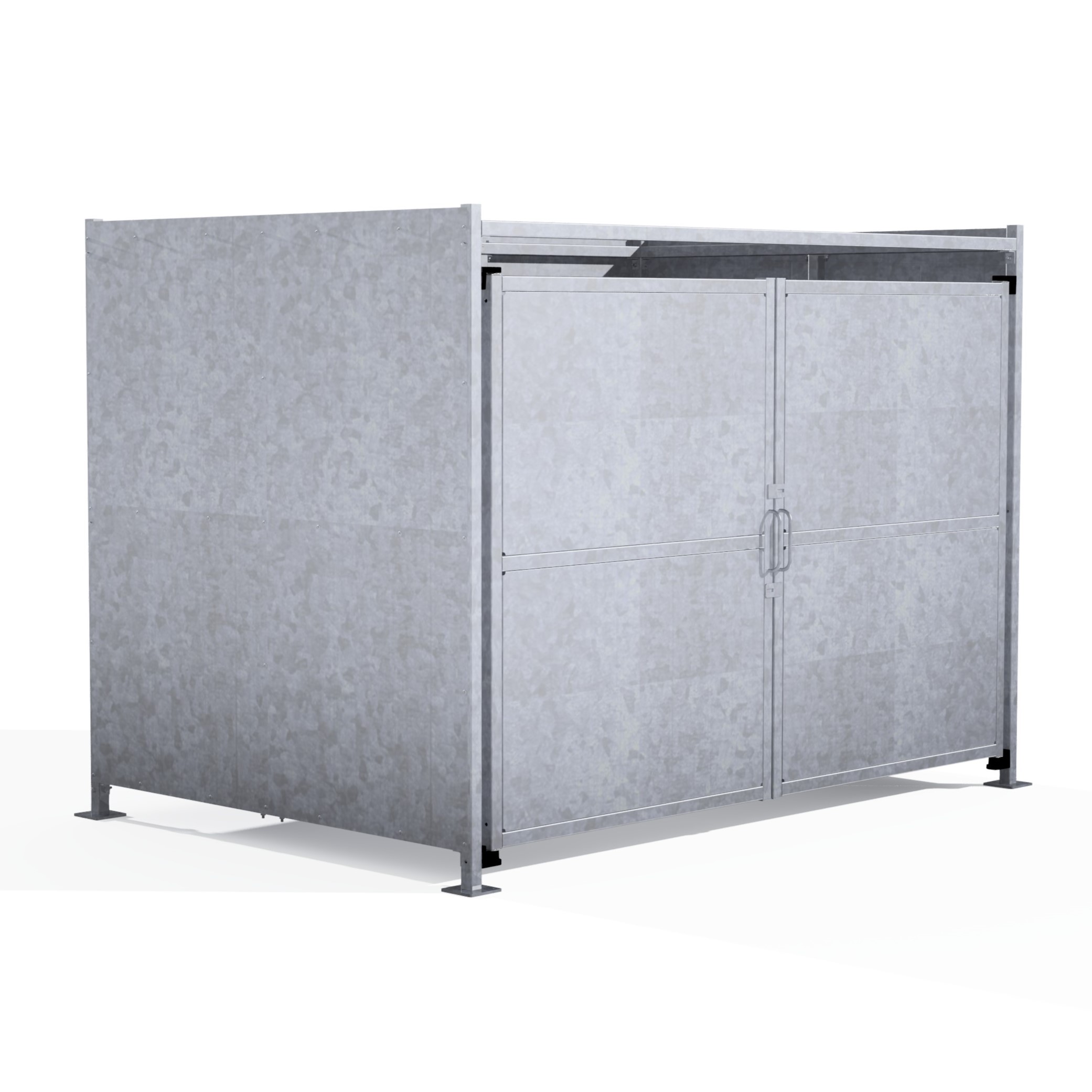 The EM2 variant of the Eaton shelter is a free-standing shelter with Galvanised sheet clad Doors lockable by padlock (not included) designed for on site assembly, constructed from galvanised mild steel.