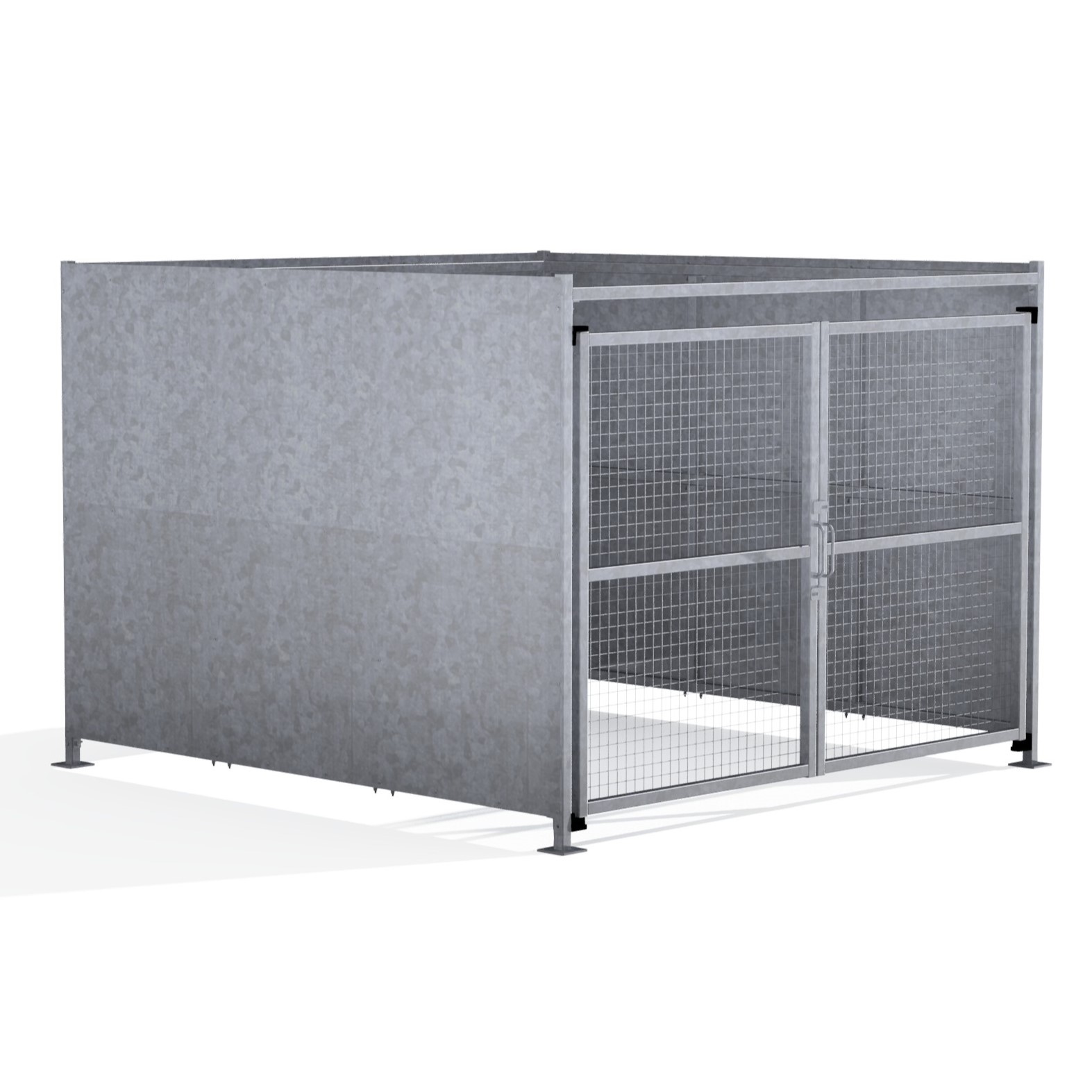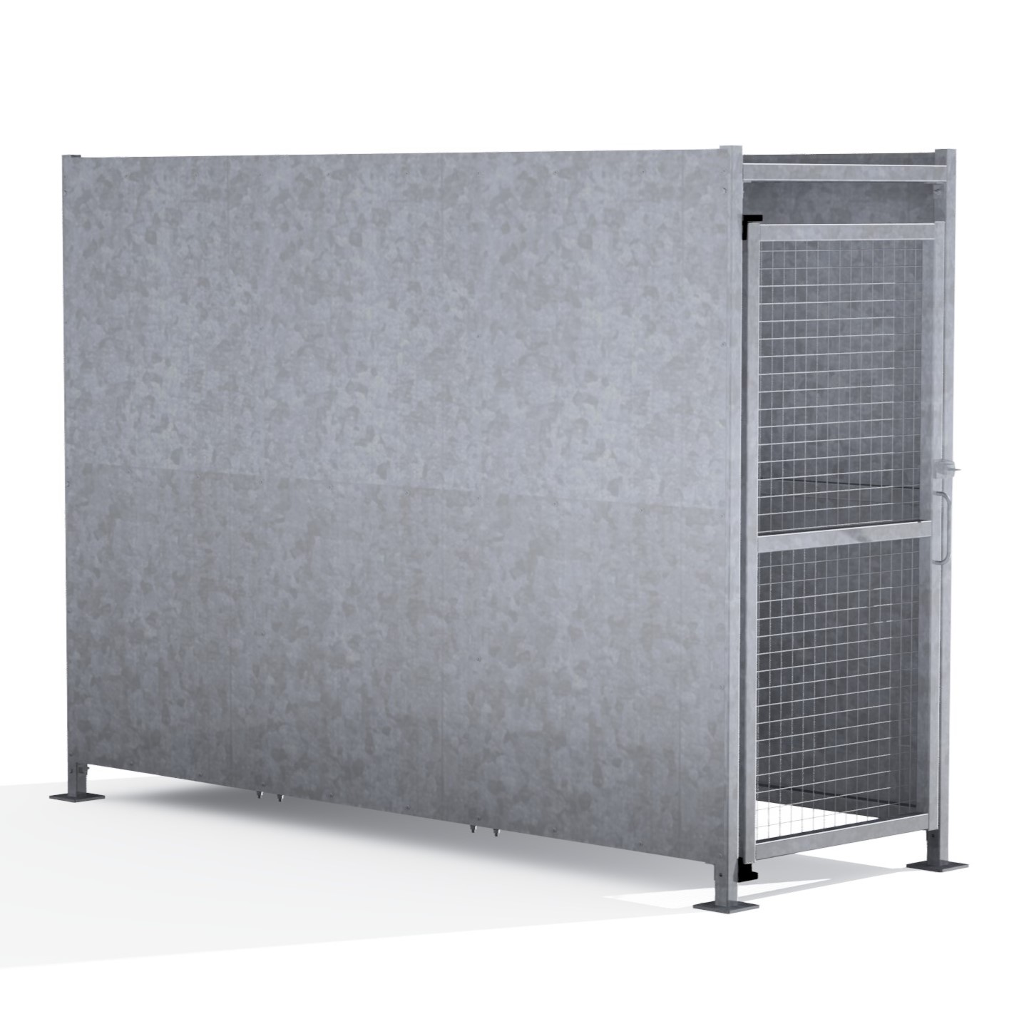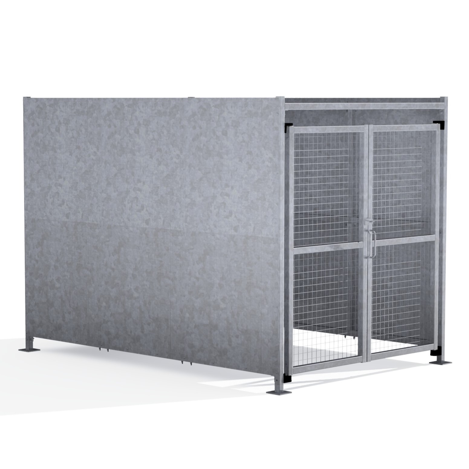 The FM1 variant of the Foxton shelter is a free-standing shelter with Mesh Doors lockable by padlock (not included) designed for on site assembly, constructed from galvanised mild steel.