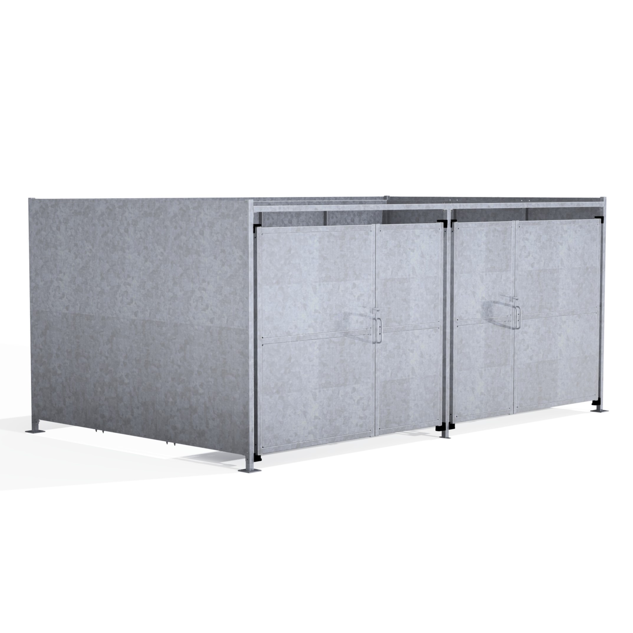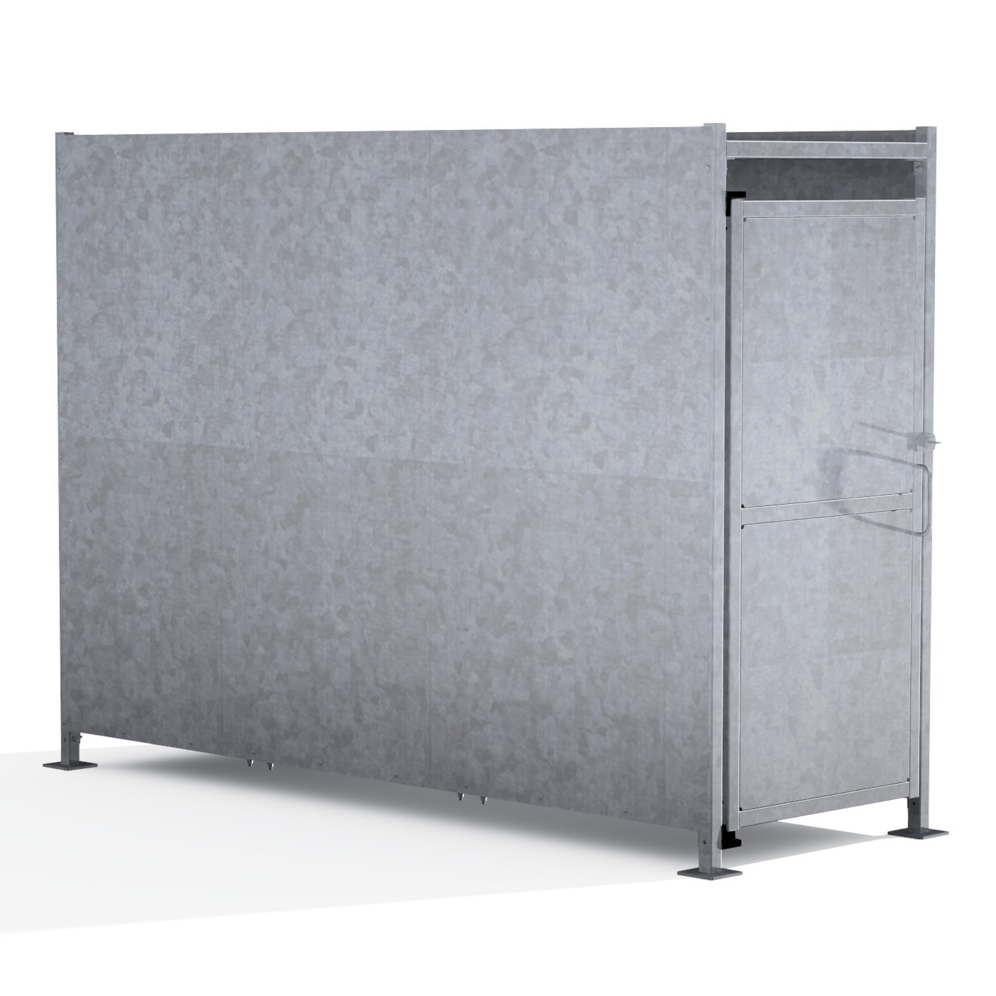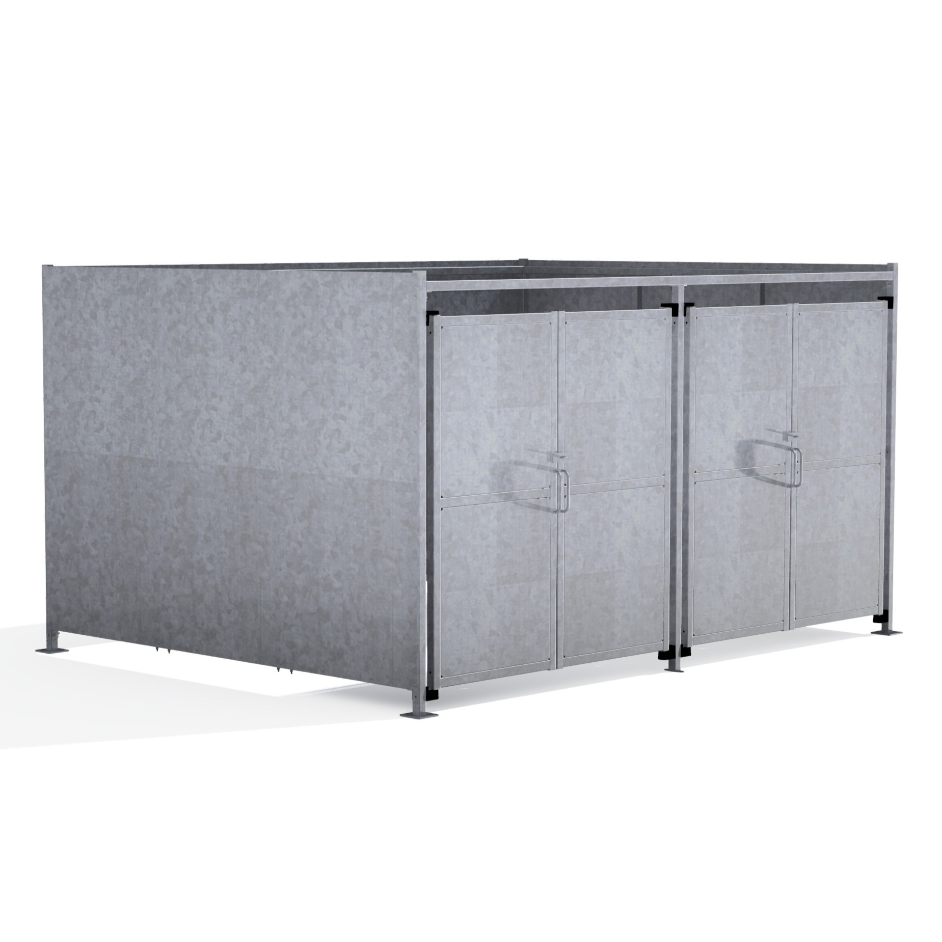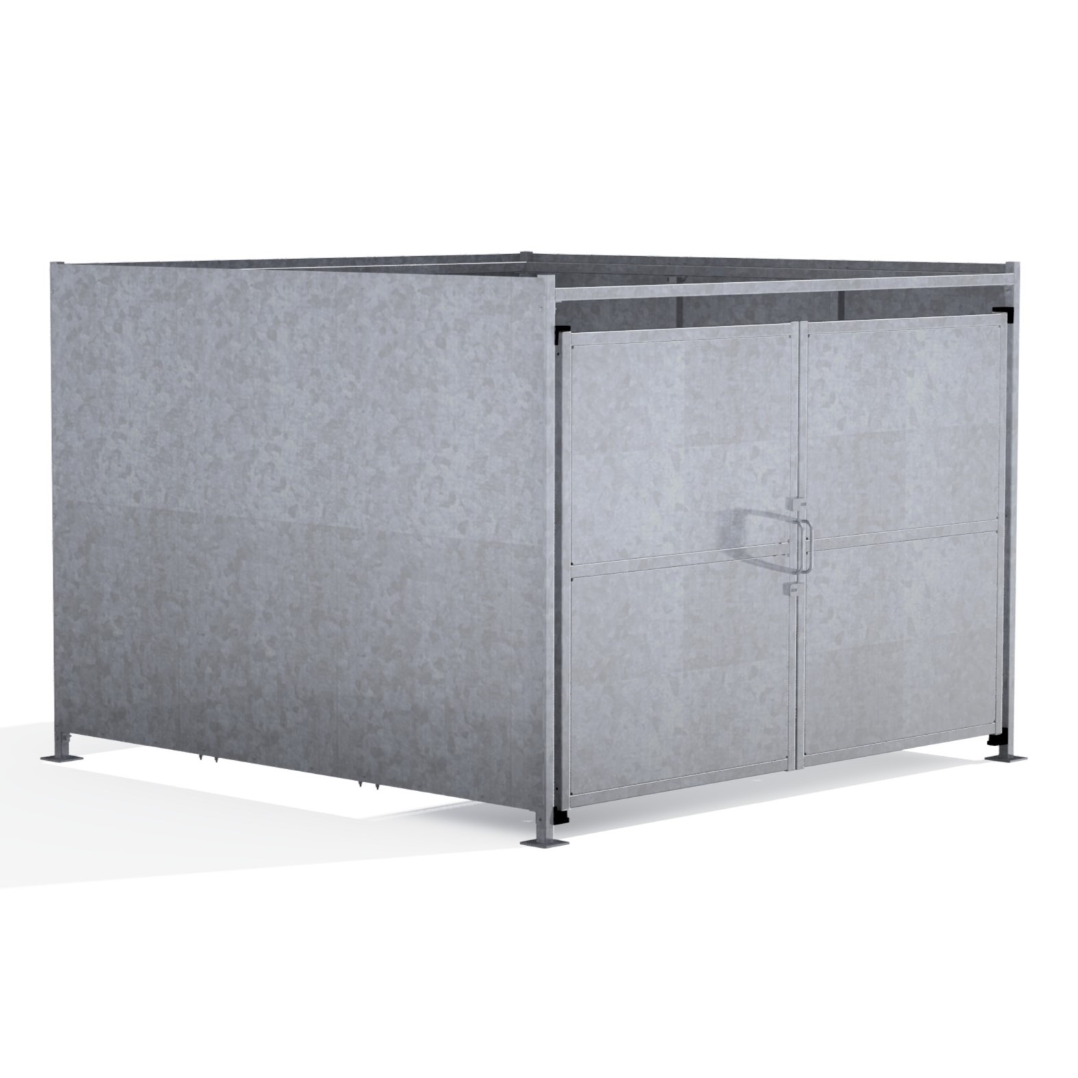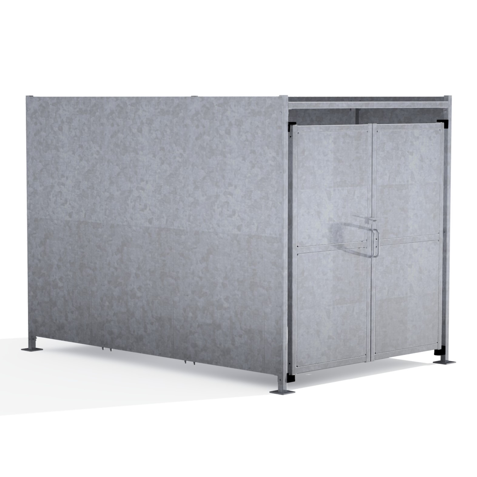 The FM2 variant of the Foxton shelter is a free-standing shelter with Galvanised sheet clad Doors lockable by padlock (not included) designed for on site assembly, constructed from galvanised mild steel.