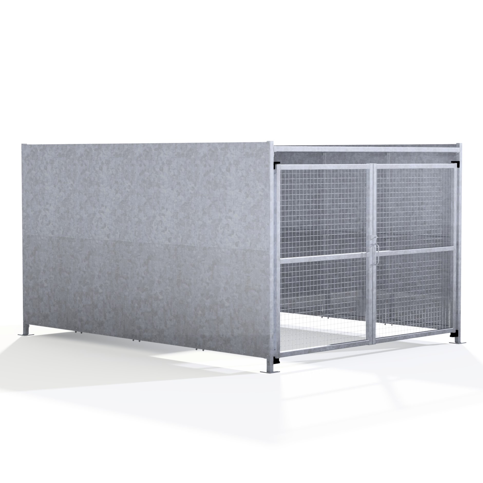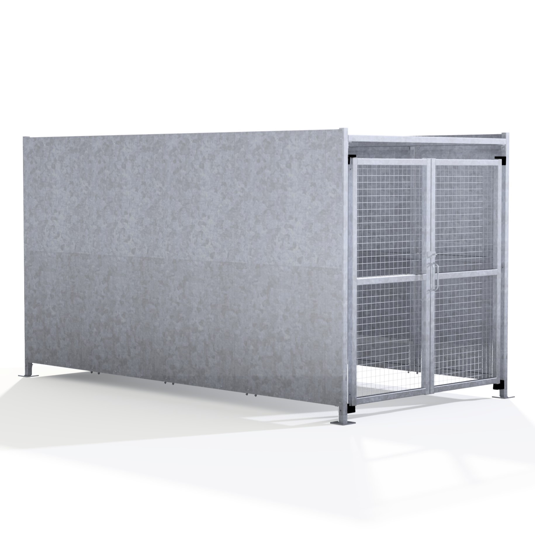 The GM1 variant of the Groby shelter is a free-standing shelter with Mesh Doors lockable by padlock (not included) designed for on site assembly, constructed from galvanised mild steel.