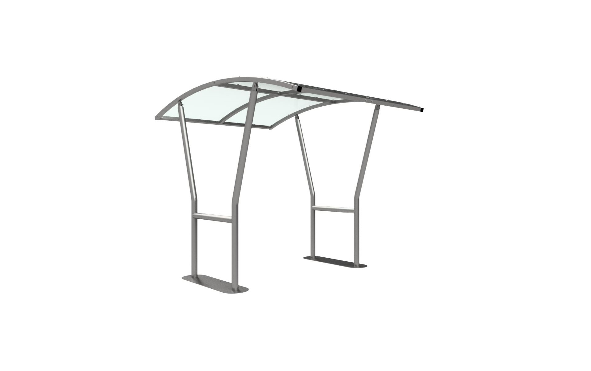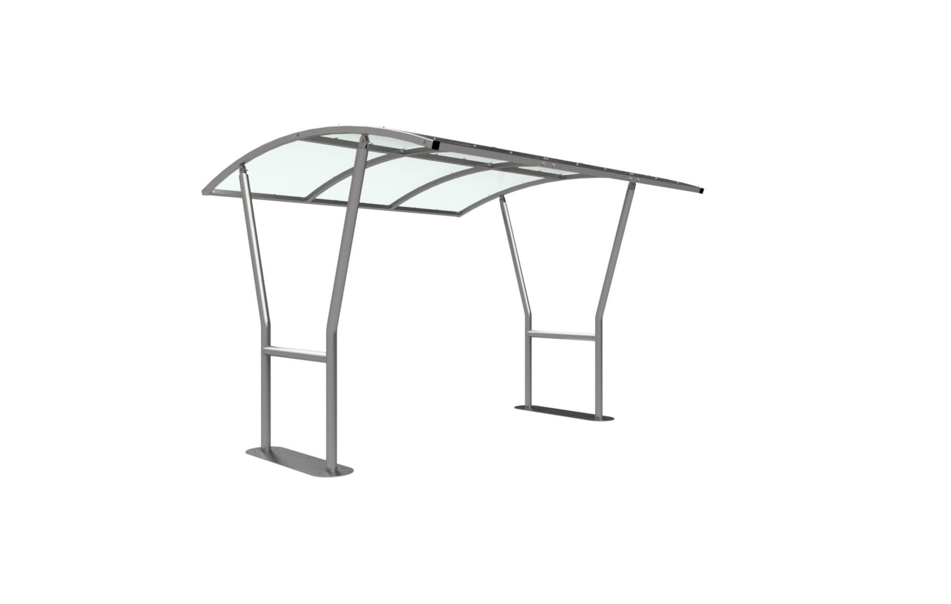 The Harbledown shelter is a free-standing, open sided shelter designed for on site assembly, constructed from galvanised mild steel. Complete with a 4mm PETG clear sheet curved roof.