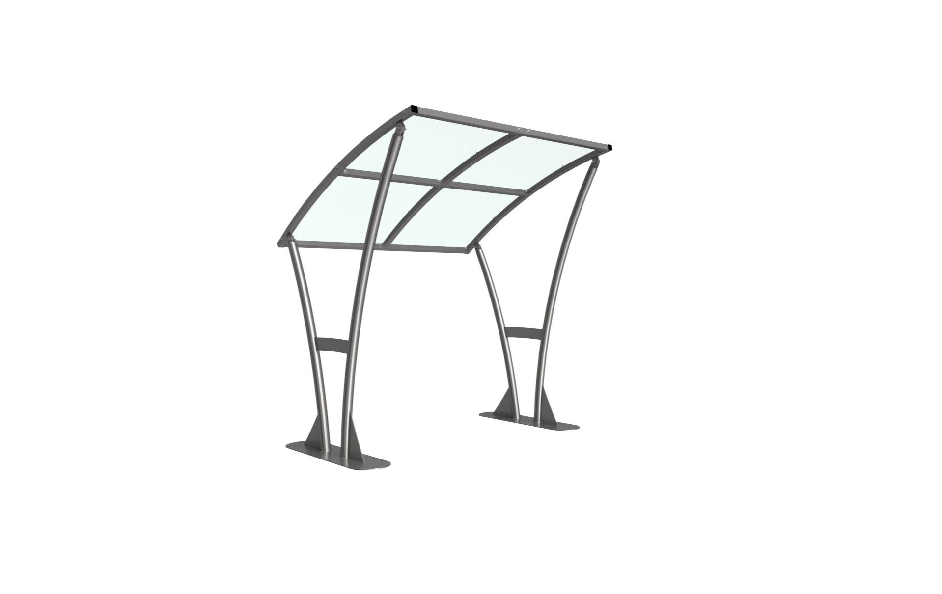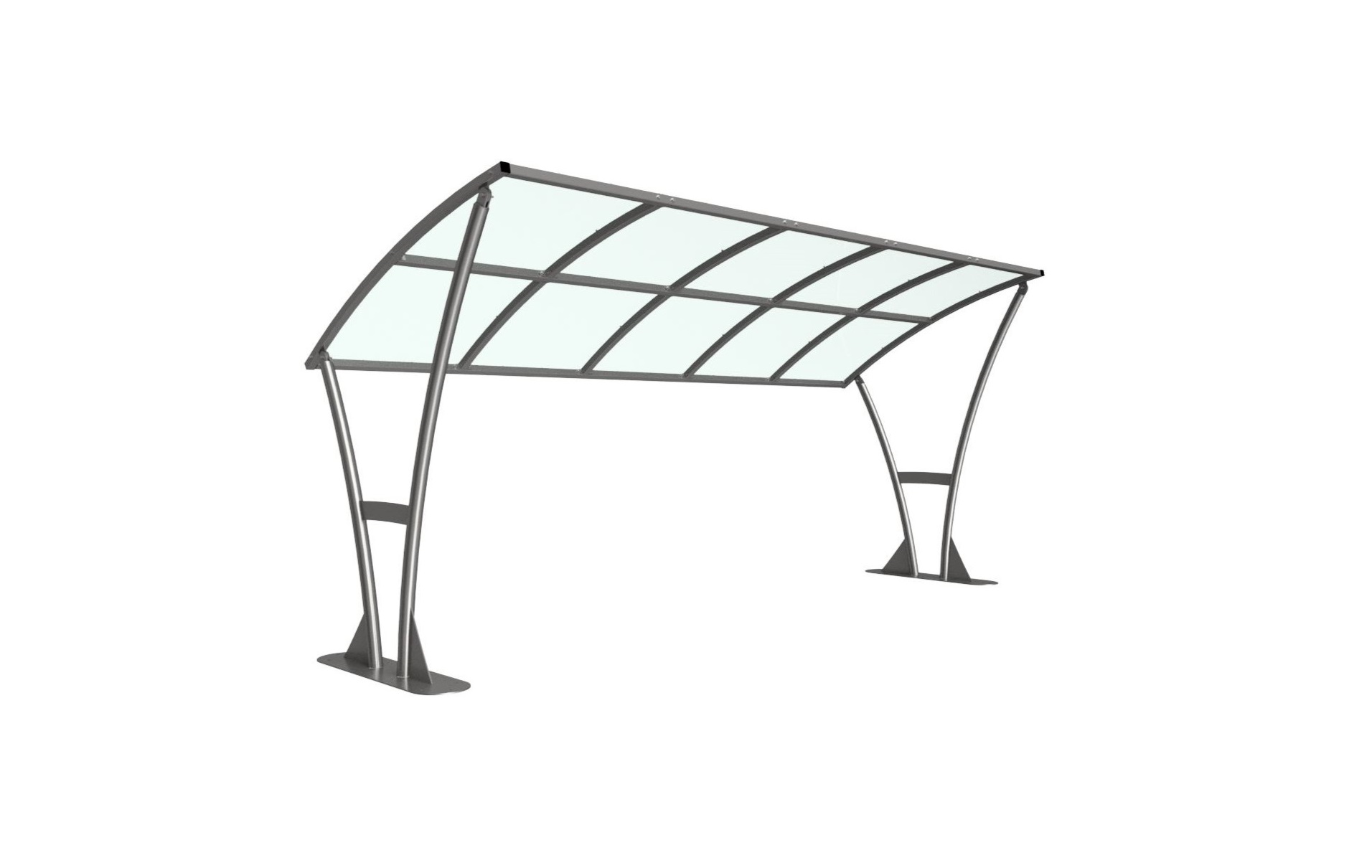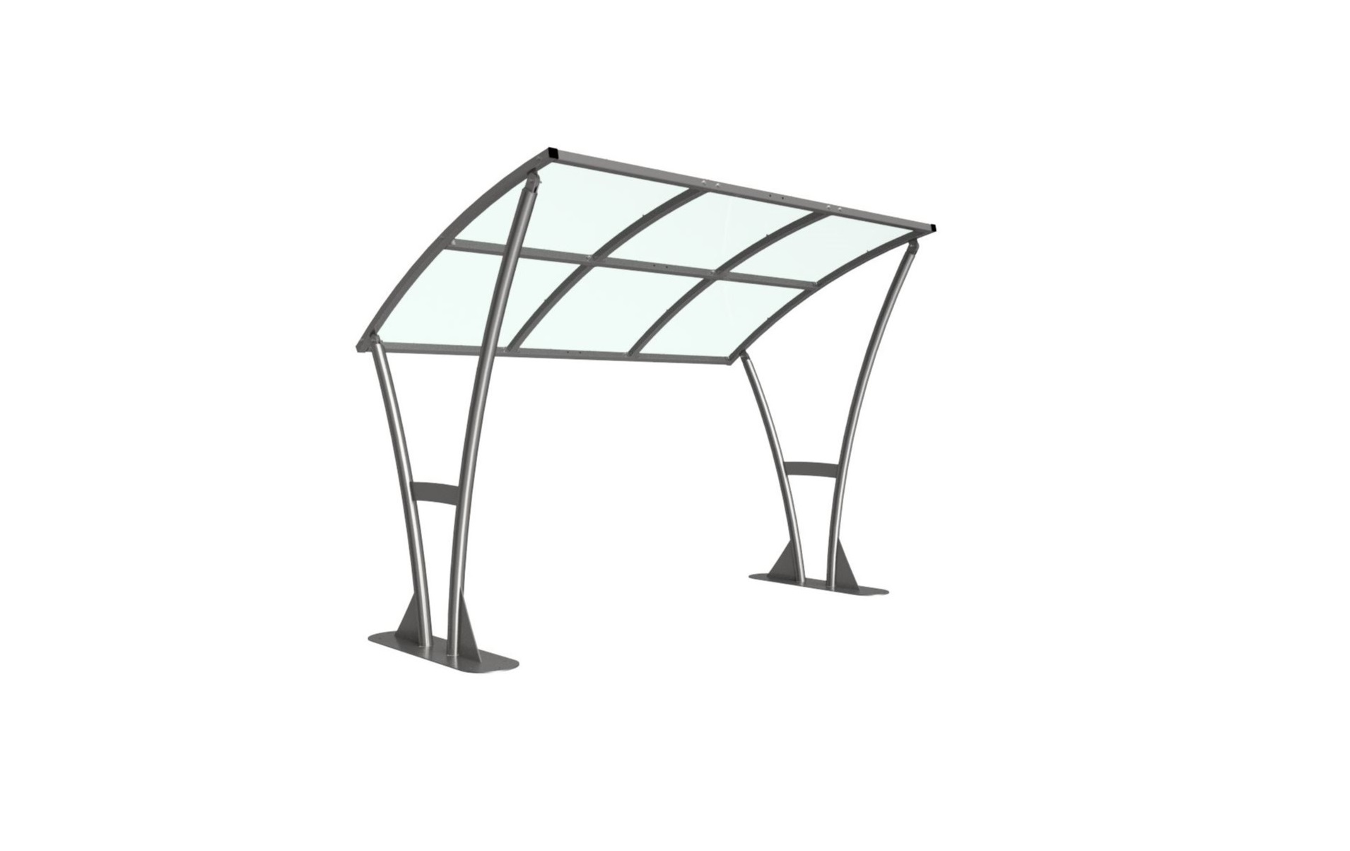 The Newton shelter is a free-standing, open sided shelter designed for on site assembly, constructed from galvanised mild steel. Complete with a 4mm PETG clear sheet curved roof.