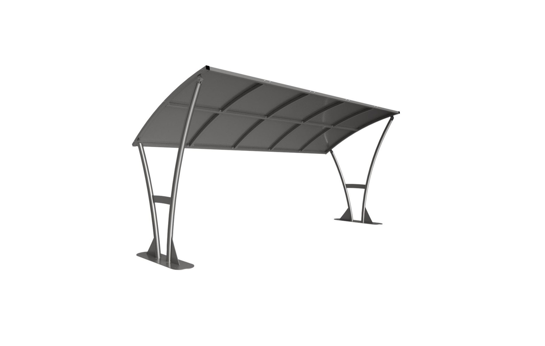 The Newton shelter is a free-standing, open sided shelter designed for on site assembly, constructed from galvanised mild steel. Complete with galvanised sheet curved roof.