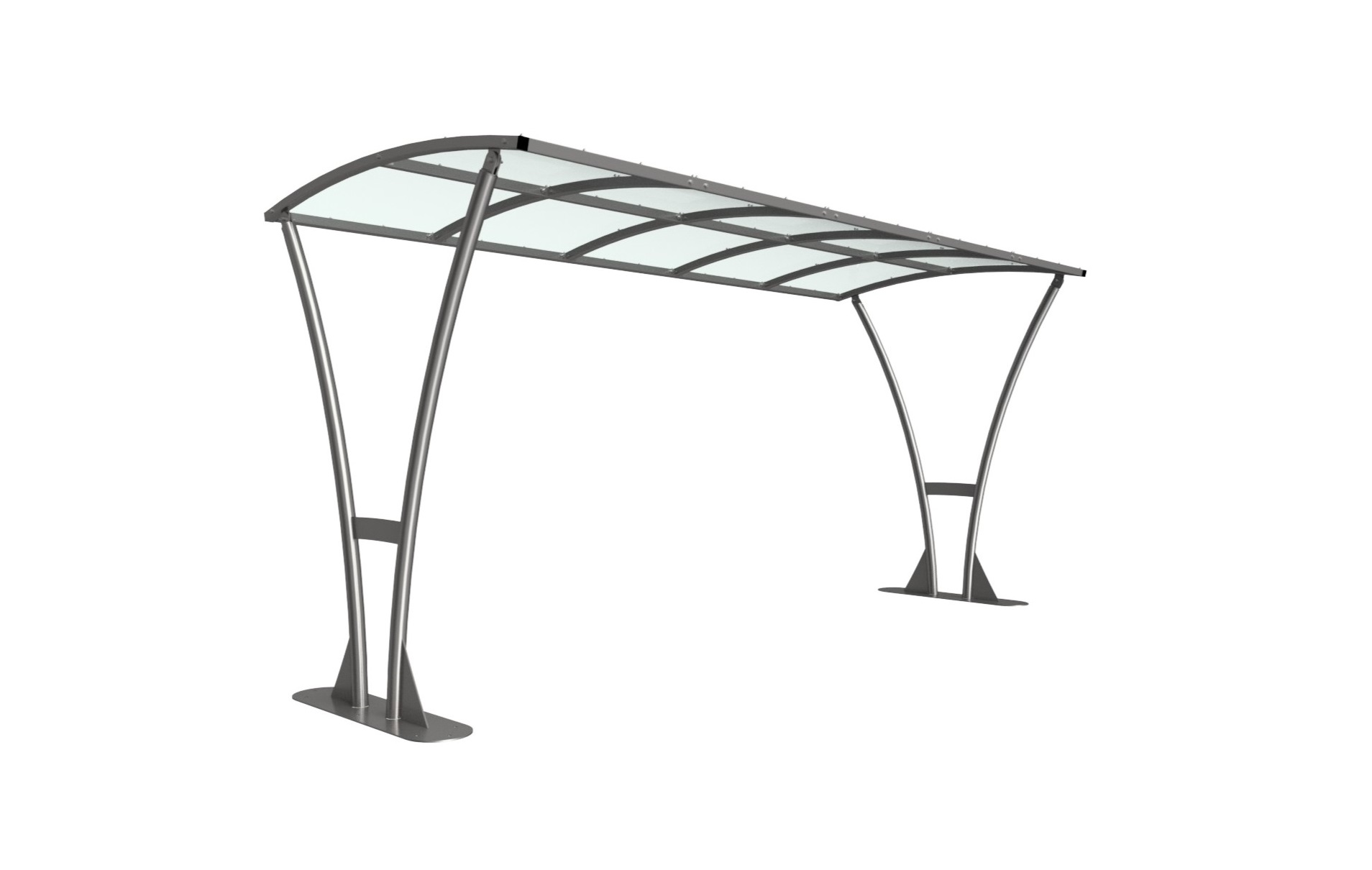 The Tatham shelter is a free-standing, open sided shelter designed for on site assembly, constructed from galvanised mild steel. Complete with a 4mm PETG clear sheet curved roof.