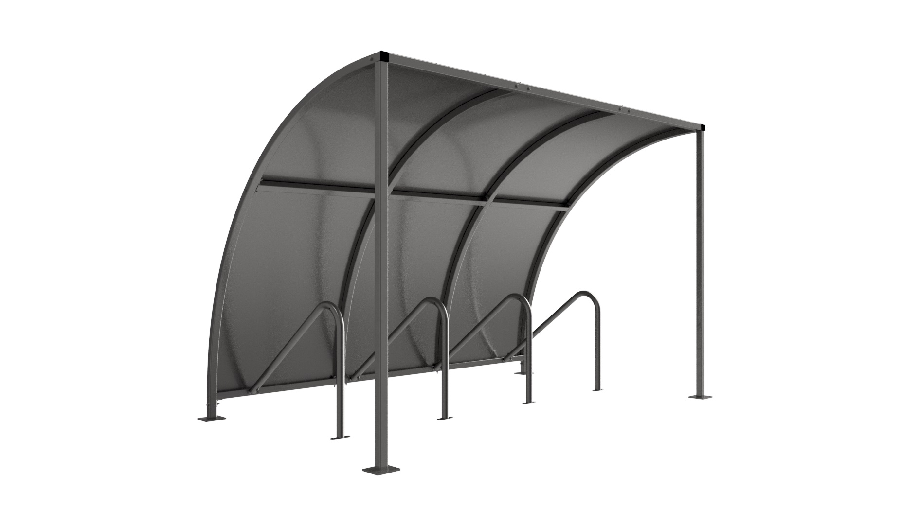 The VS1 Cycle Shelter is a light weight, free-standing, single sided cycle shelter with integrated cycle stands designed for on site assembly. Constructed from galvanised mild steel. Complete with galvanised sheet roof / back, with open ends.