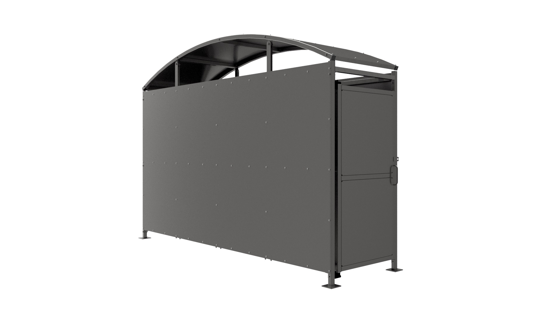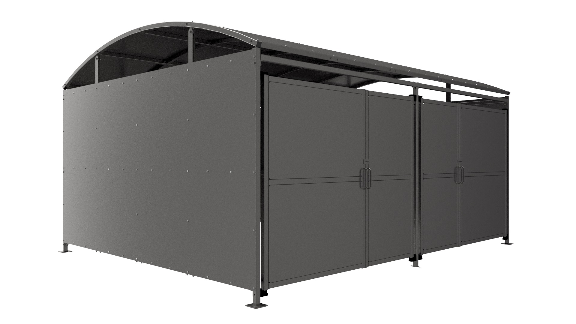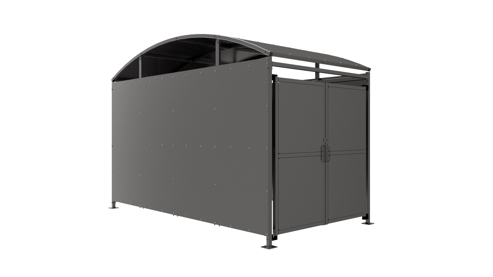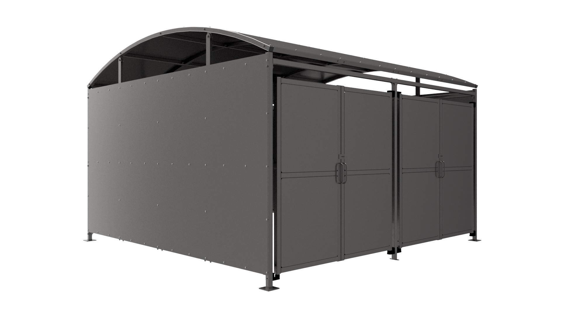 The YM2 variant of the Wilson shelter is a free-standing shelter with Clad Doors lockable by padlock (not included) designed for on site assembly,constructed from galvanised mild steel. Complete with galvanised sheet roof, and side panels. Side-to side curved roof.