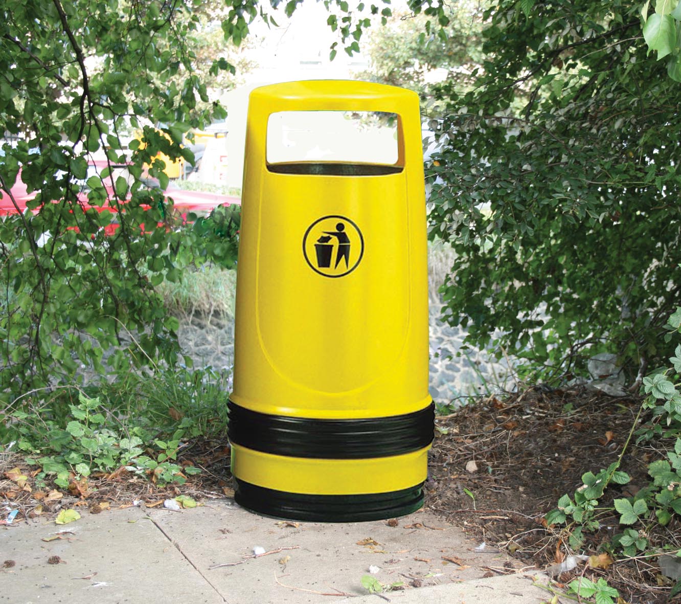 A modern take on the traditional litter bin, this rotationally moulded polyethylene bin features a decorative stripe at the base of the cover. Highly durable, these bins are UV stable and ideal for high density public areas such as high streets and parks.