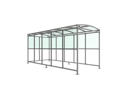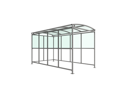 Suitable as a smoking shelter. Width of 2m, with lengths from 1-5m, extension bays can be added to achieve the desired shelter length.