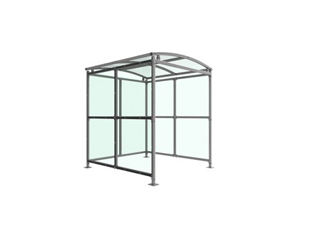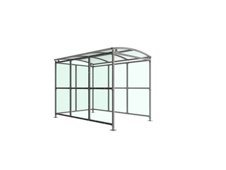 The Binley shelter is a free-standing, open fronted shelter designed for on site assembly, constructed from galvanised mild steel. Complete with a 4mm PETG clear sheet roof, and side panels. Side-to side curved roof.