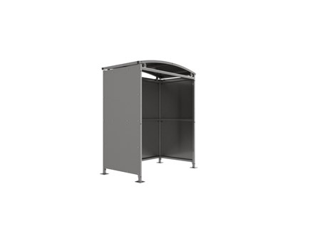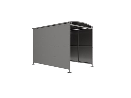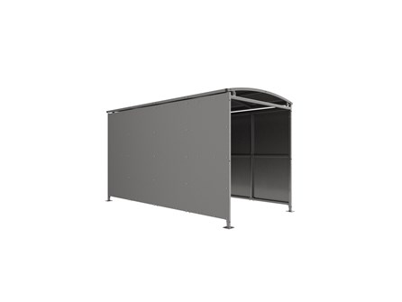 The Binley shelter is a free-standing, open fronted shelter designed for on site assembly, constructed from galvanised mild steel. Complete with galvanised sheet roof, and side panels. Side-to side curved roof.