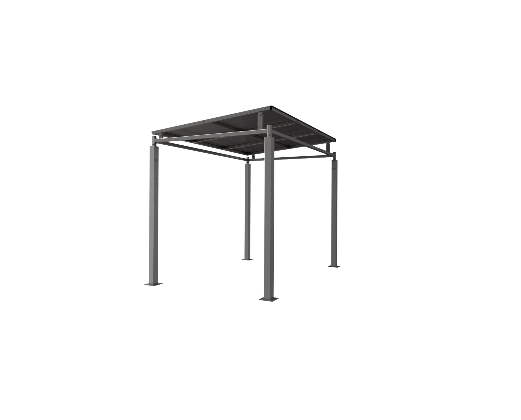 The Bedford shelter is a free-standing, open sided shelter designed for on site assembly, constructed from galvanised mild steel. Complete with galvanised sheet flat angled roof.