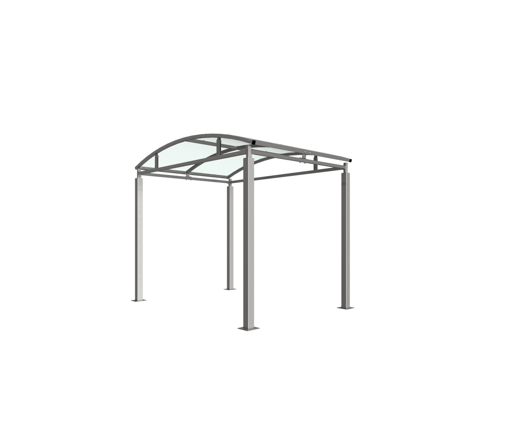 The Bolton shelter is a free-standing, open sided shelter designed for on site assembly, constructed from galvanised mild steel. Complete with a 4mm PETG clear sheet curved roof.