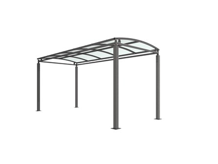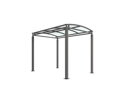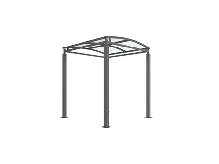 The Denham shelter is a free-standing, open sided shelter designed for on site assembly, constructed from galvanised mild steel. Complete with a 4mm PETG clear sheet curved roof.