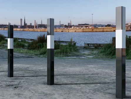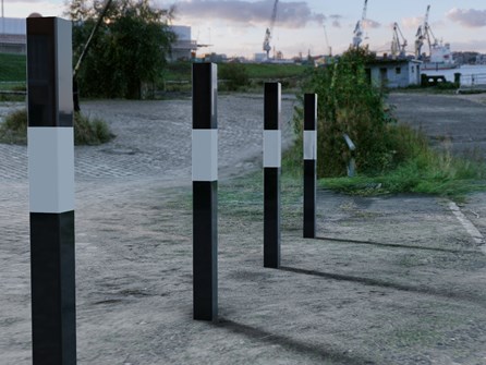 The complete range of Black and White Square Bollards is available in sizes from 50mm square to 150mm square, coated black with a white reflective band.