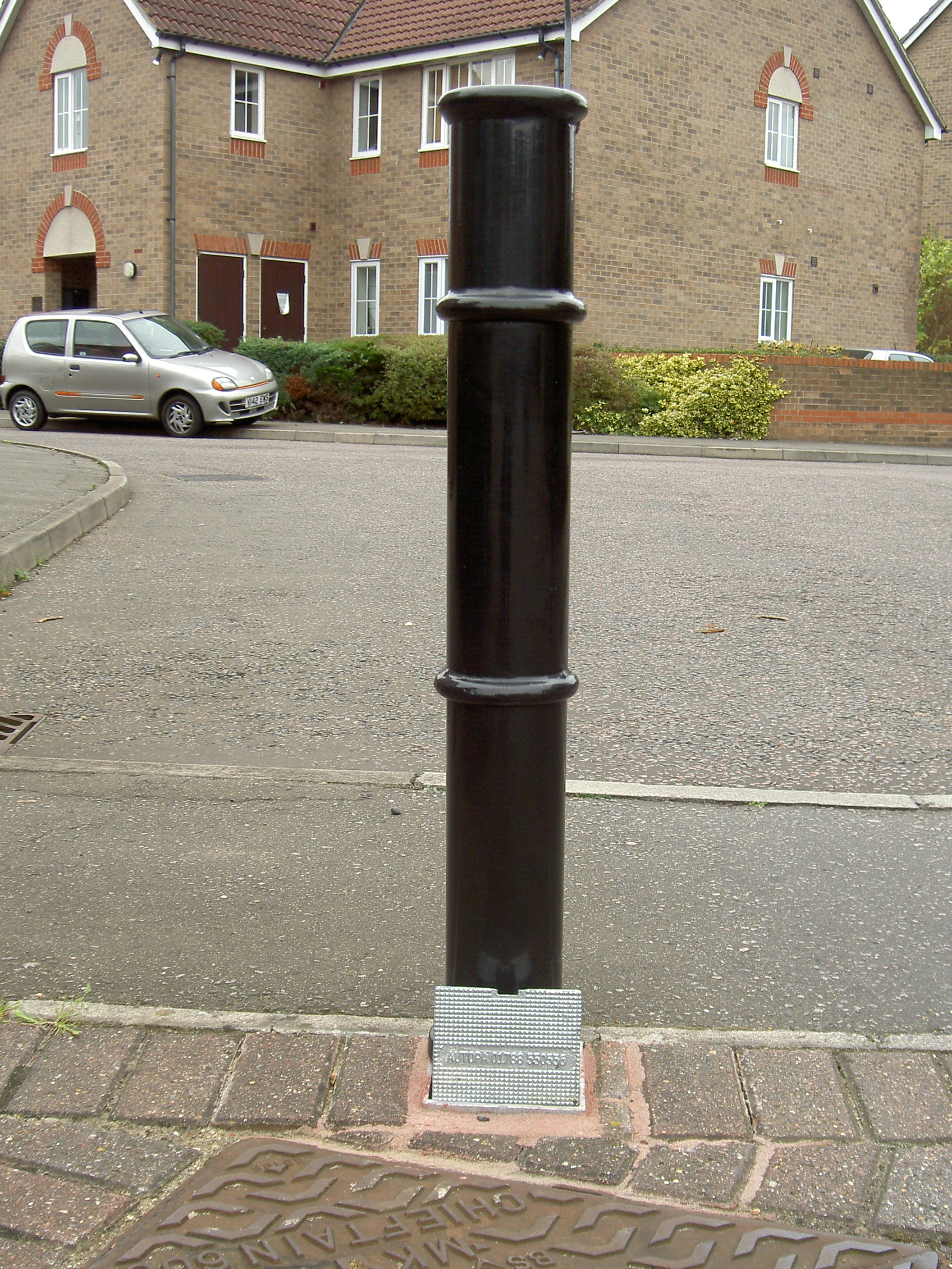 - Ground fixing of ragged bollards is assisted by ground fixing spikes