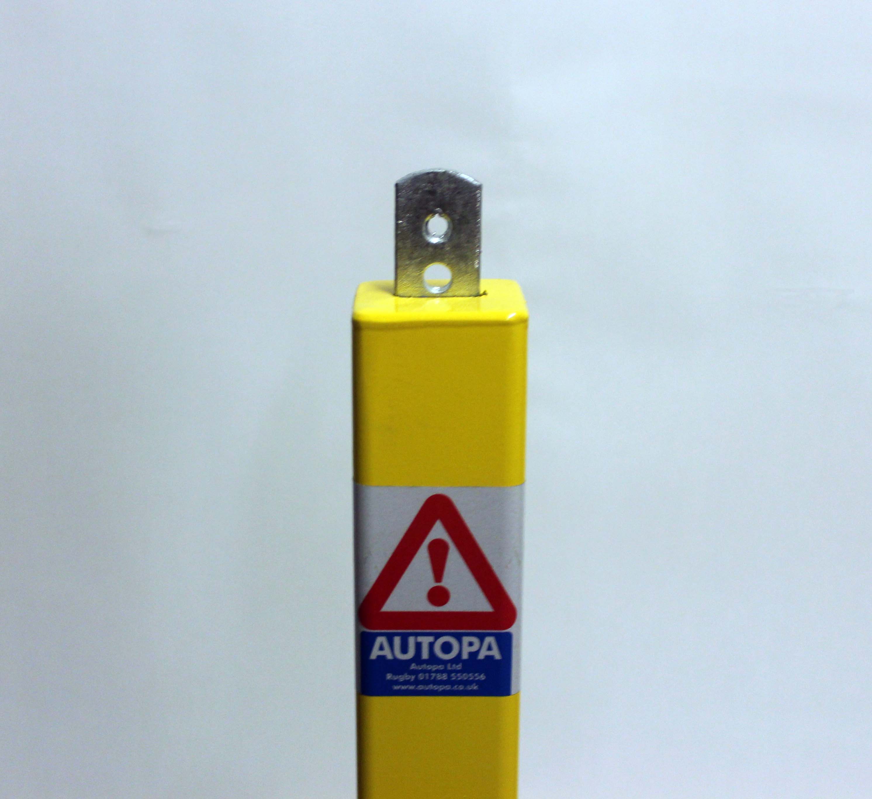 The AUTOPA Square TOPLOK Parking Post is locked by fitting a padlock to the top of the post through the lower hole of the bar protruding through the top of the post. Supplied flanged only, colour coated versions are also available (please specify BS/RAL numbers at time of order). For emergency access the AUTOPA Hinged Parking Post FB has a removable hinge pin which is secured with a Fire Brigade padlock (lock and key both available separately).