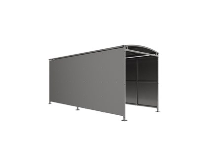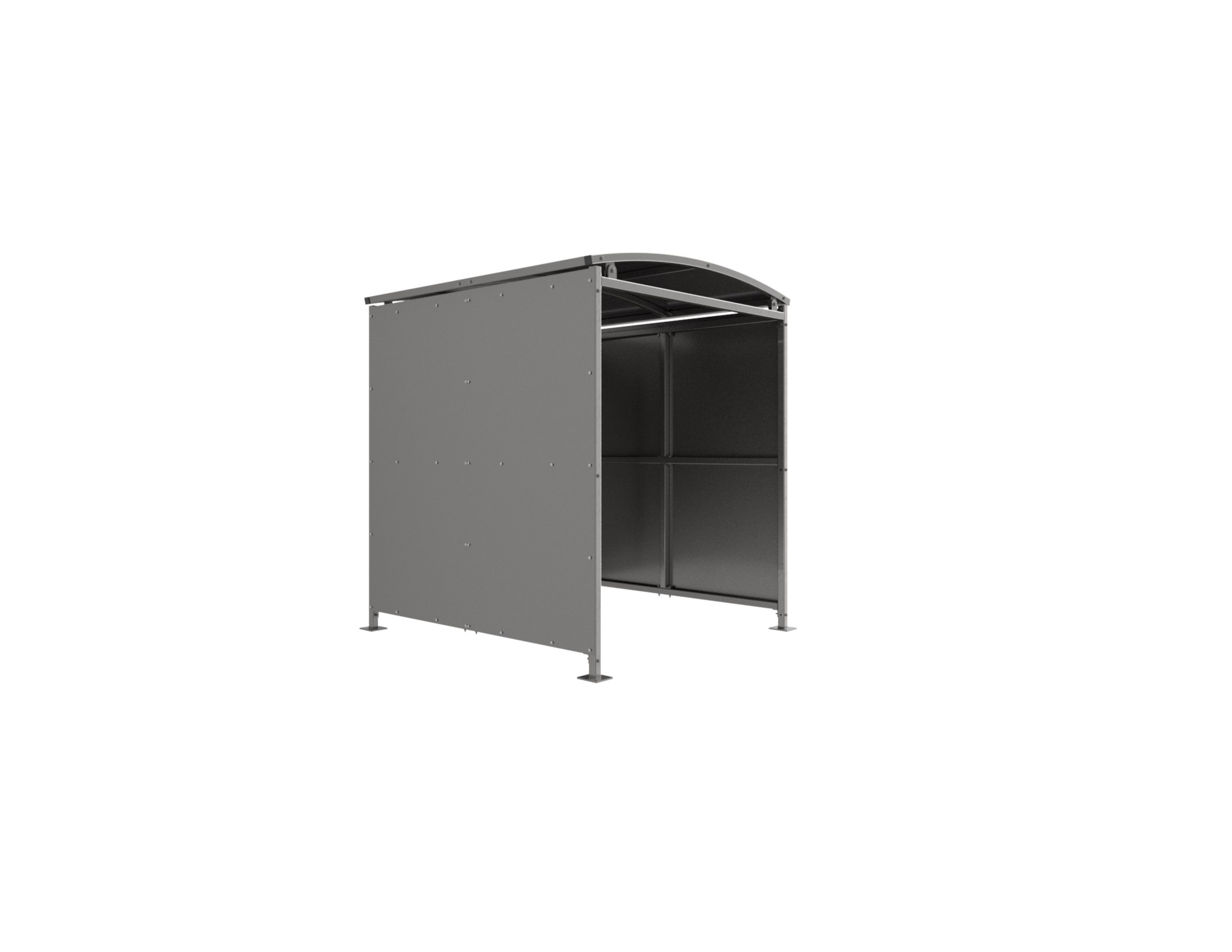 The Binley shelter is a free-standing, open fronted shelter designed for on site assembly, constructed from galvanised mild steel. Complete with galvanised sheet roof, and side panels. Side-to side curved roof.