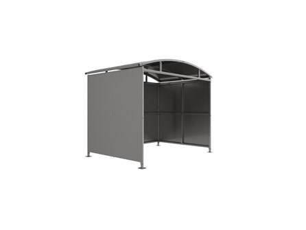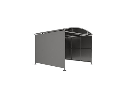 The Watford shelter is a free-standing, open fronted shelter designed for on site assembly, constructed from galvanised mild steel. Complete with galvanised sheet roof, and side panels. Side-to side curved roof.