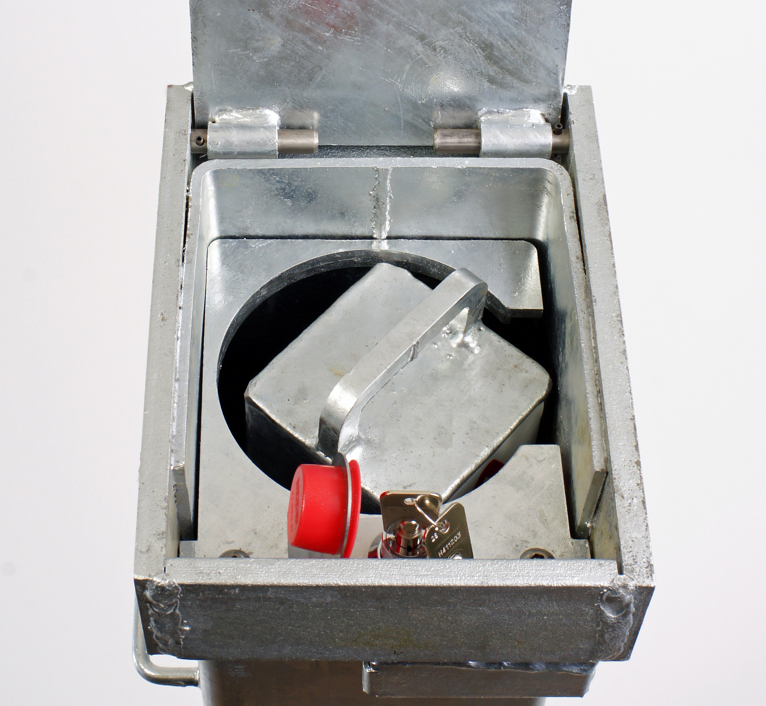 When lowered the post is fully below ground and covered using the integral lid. The post is lockable in the raised position by rotating the post 45° and then pressing the high-security push button 7-pin security lock. The post is unlocked using the supplied key, rotated and then lowered.